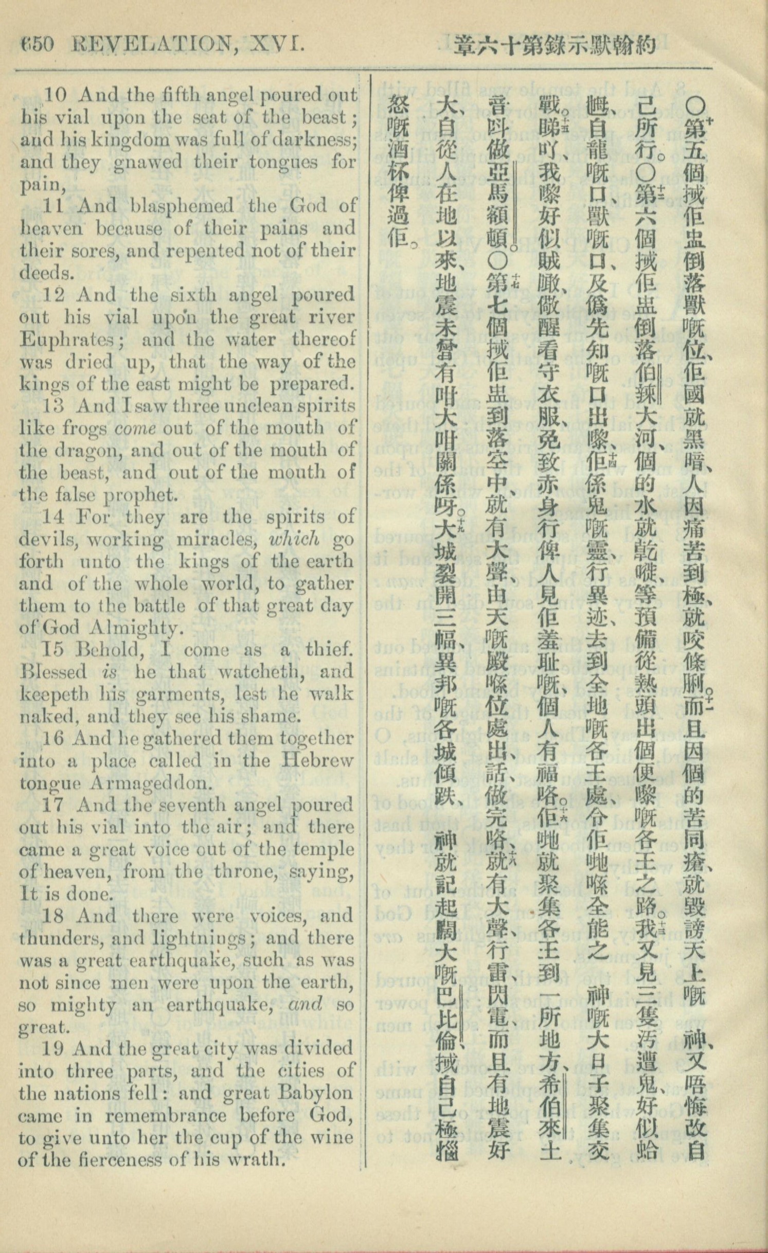 1909年中西字新約全書 啟示錄 16 章 10 節到 16 章 19 節