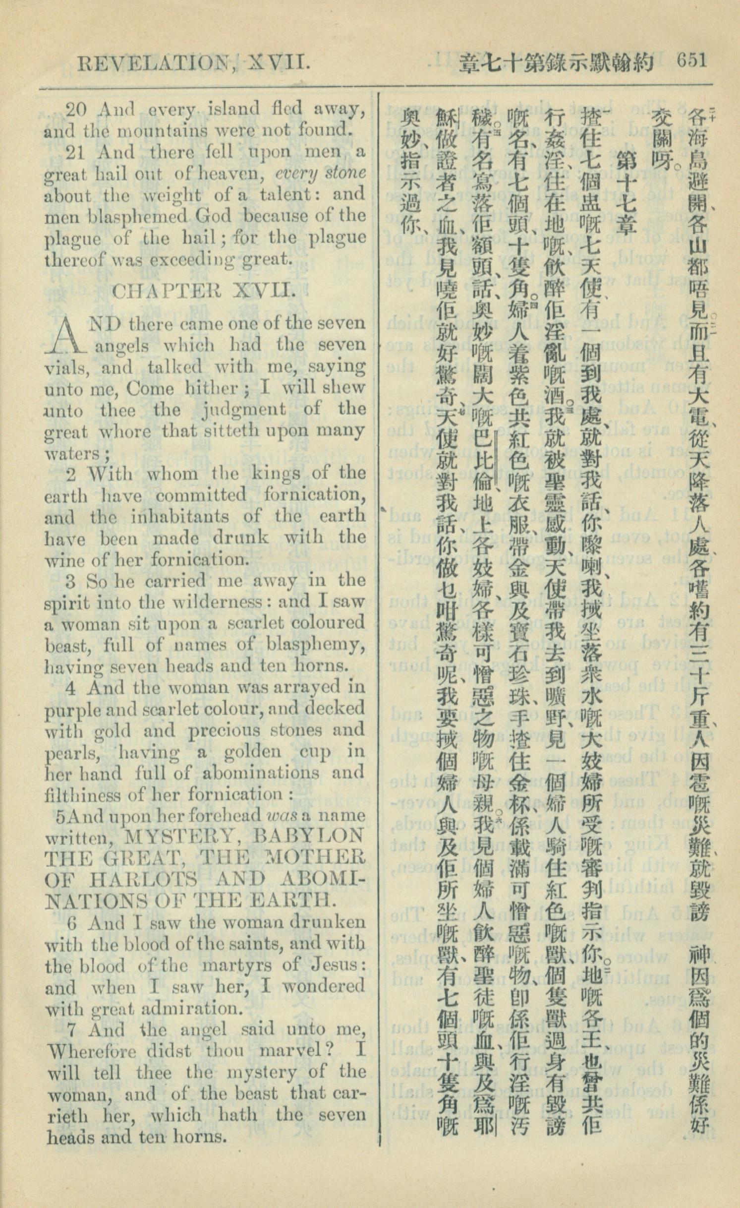1909年中西字新約全書 啟示錄 16 章 20 節到 17 章 7 節