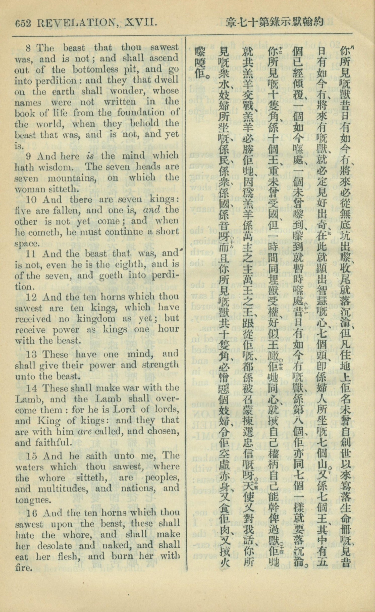 1909年中西字新約全書 啟示錄 17 章 8 節到 17 章 16 節
