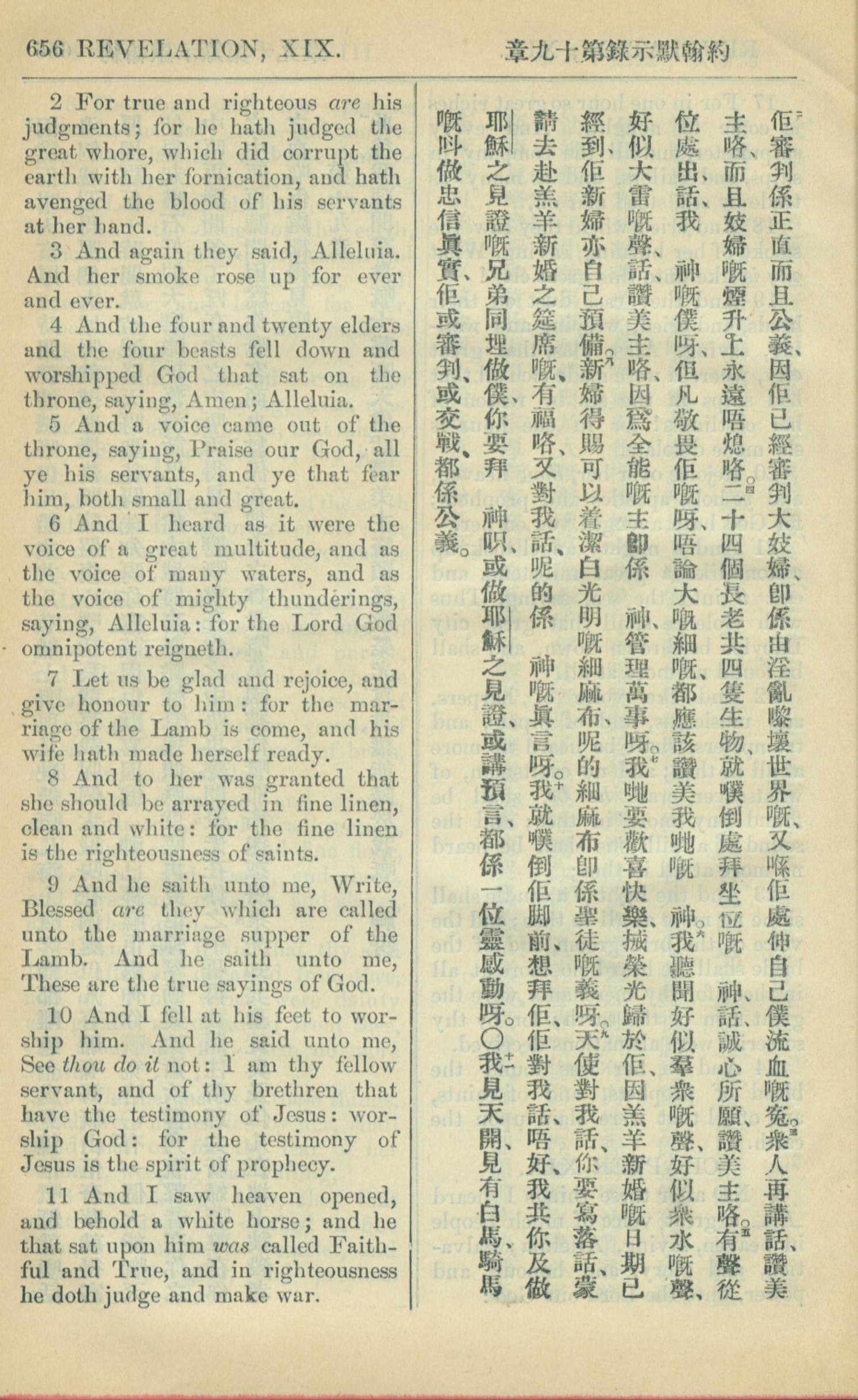1909年中西字新約全書 啟示錄 19 章 2 節到 19 章 11 節