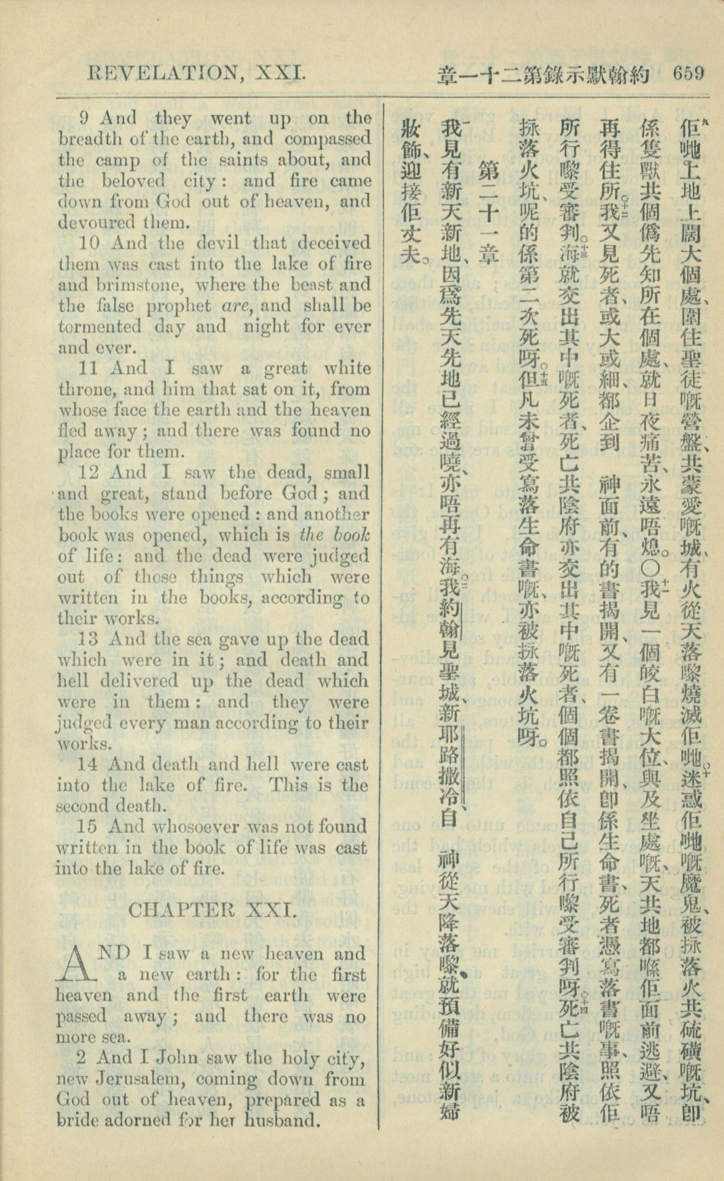 1909年中西字新約全書 啟示錄 20 章 9 節到 21 章 2 節