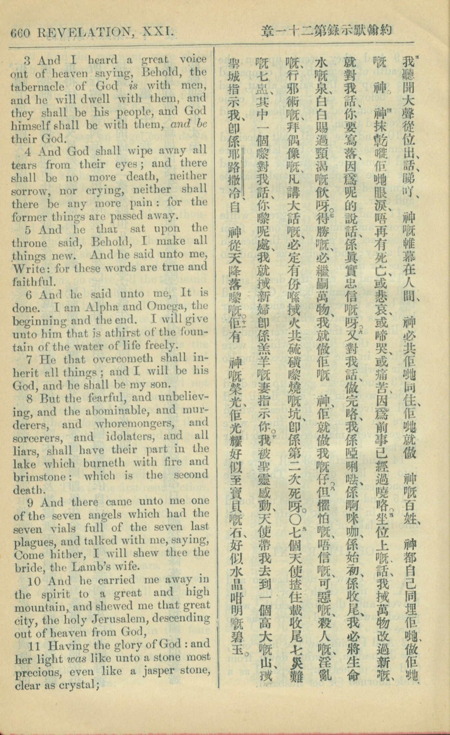 1909年中西字新約全書 啟示錄 21 章 3 節到 21 章 11 節
