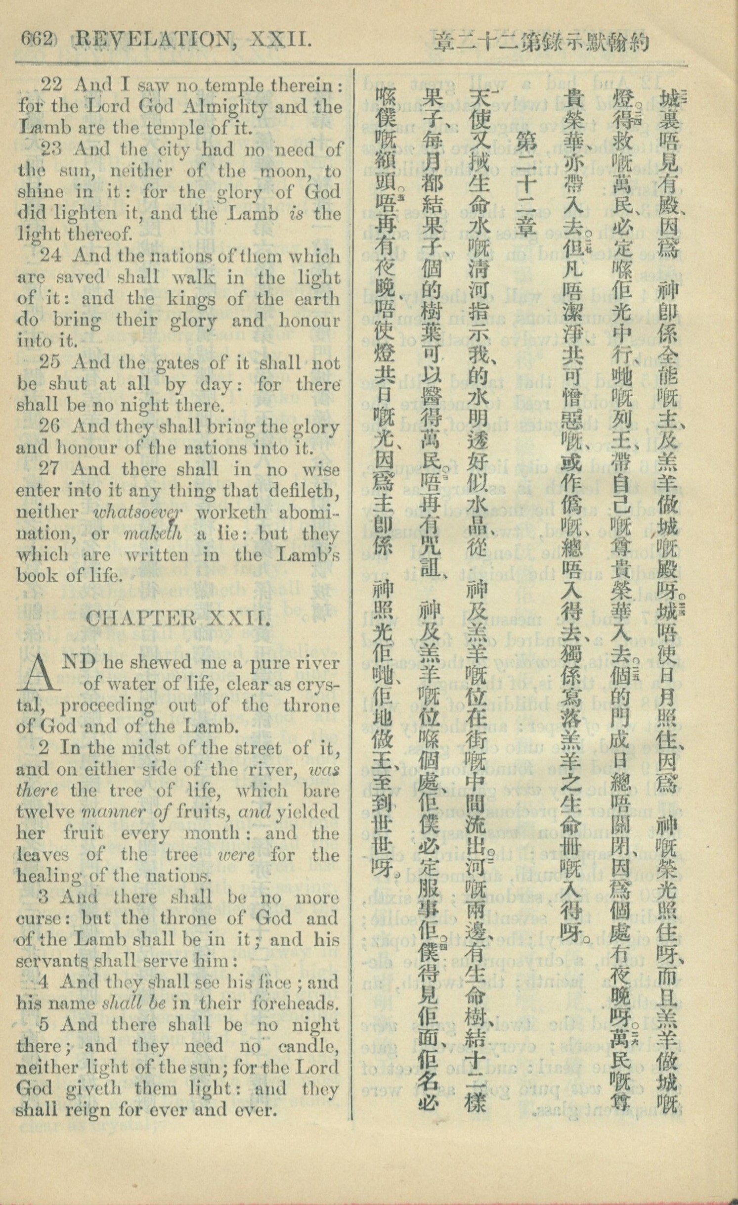 1909年中西字新約全書 啟示錄 21 章 22 節到 22 章 5 節