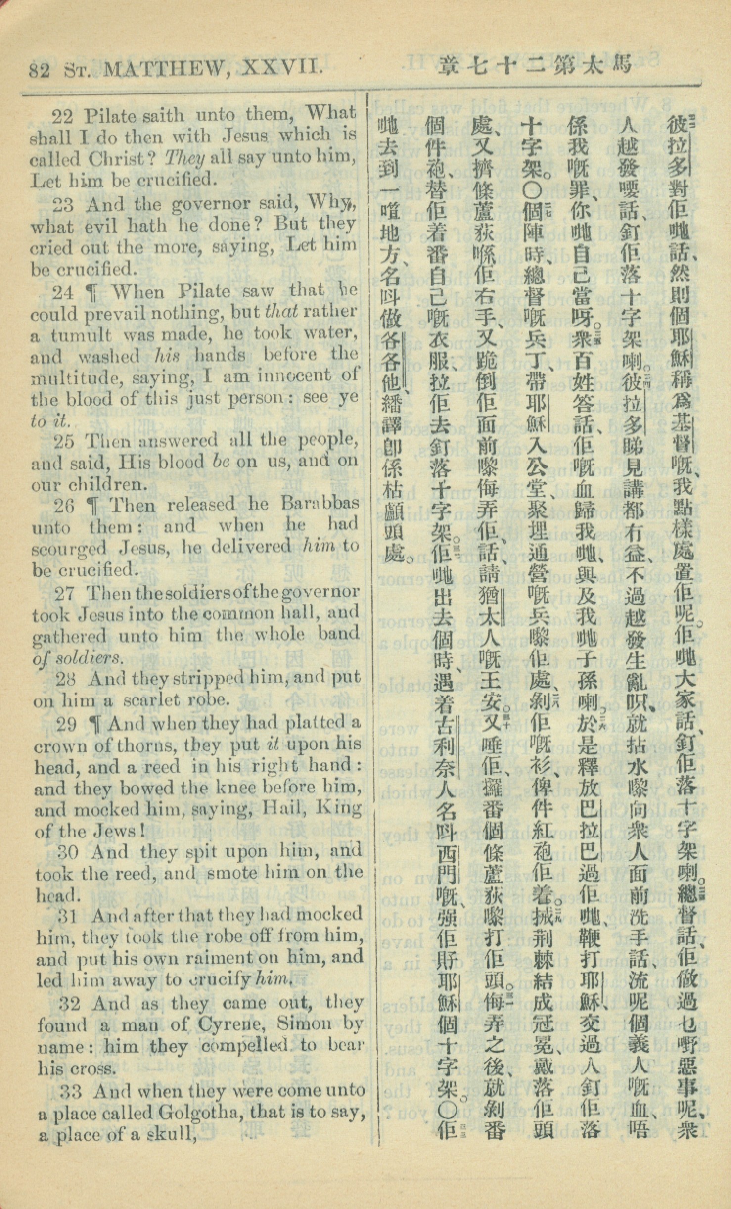 1909年中西字新約全書 馬太福音 27 章 22 節到 27 章 33 節