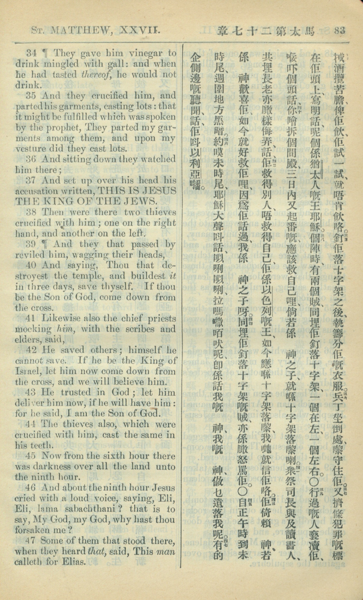 1909年中西字新約全書 馬太福音 27 章 34 節到 27 章 47 節