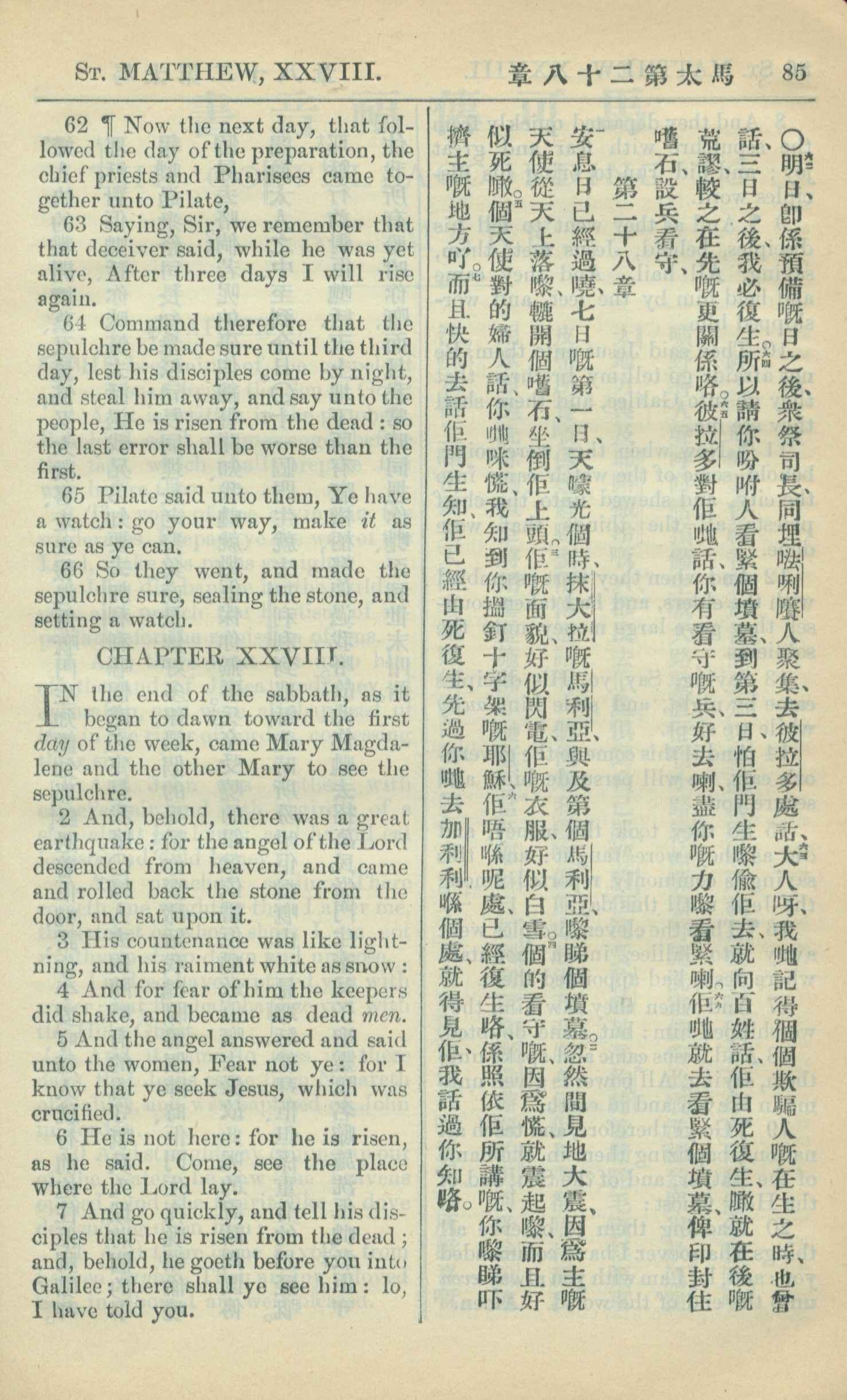 1909年中西字新約全書 馬太福音 27 章 62 節到 28 章 7 節