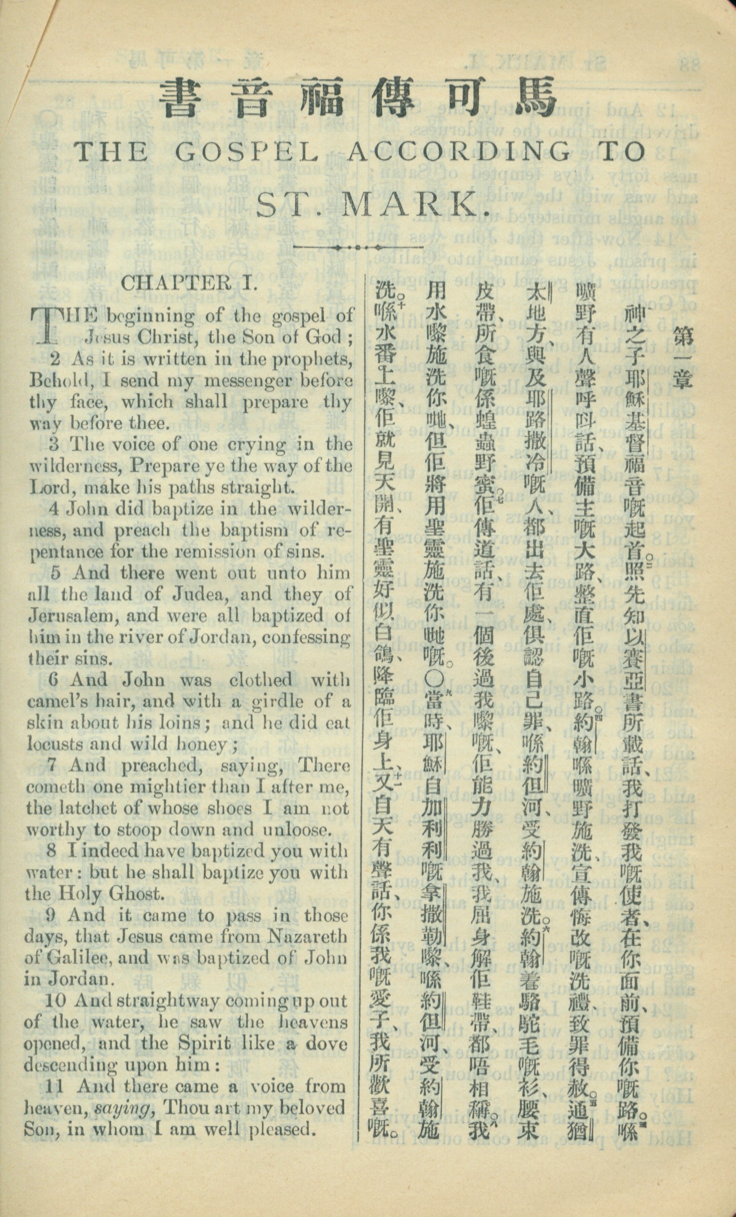 1909年中西字新約全書 馬可福音 1 章 1 節到 1 章 11 節