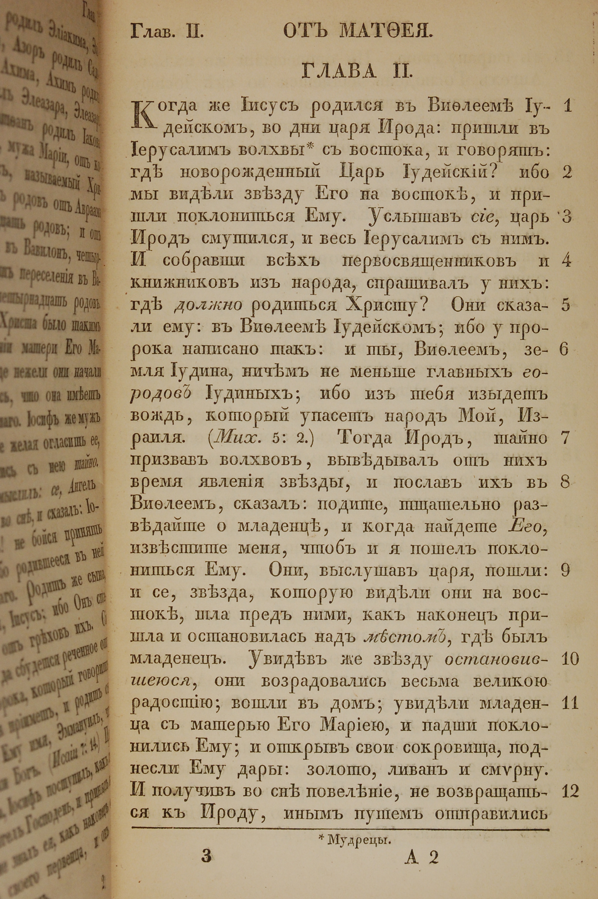 1855年俄文新約全書 馬太福音 2 章 1 節到 2 章 12 節