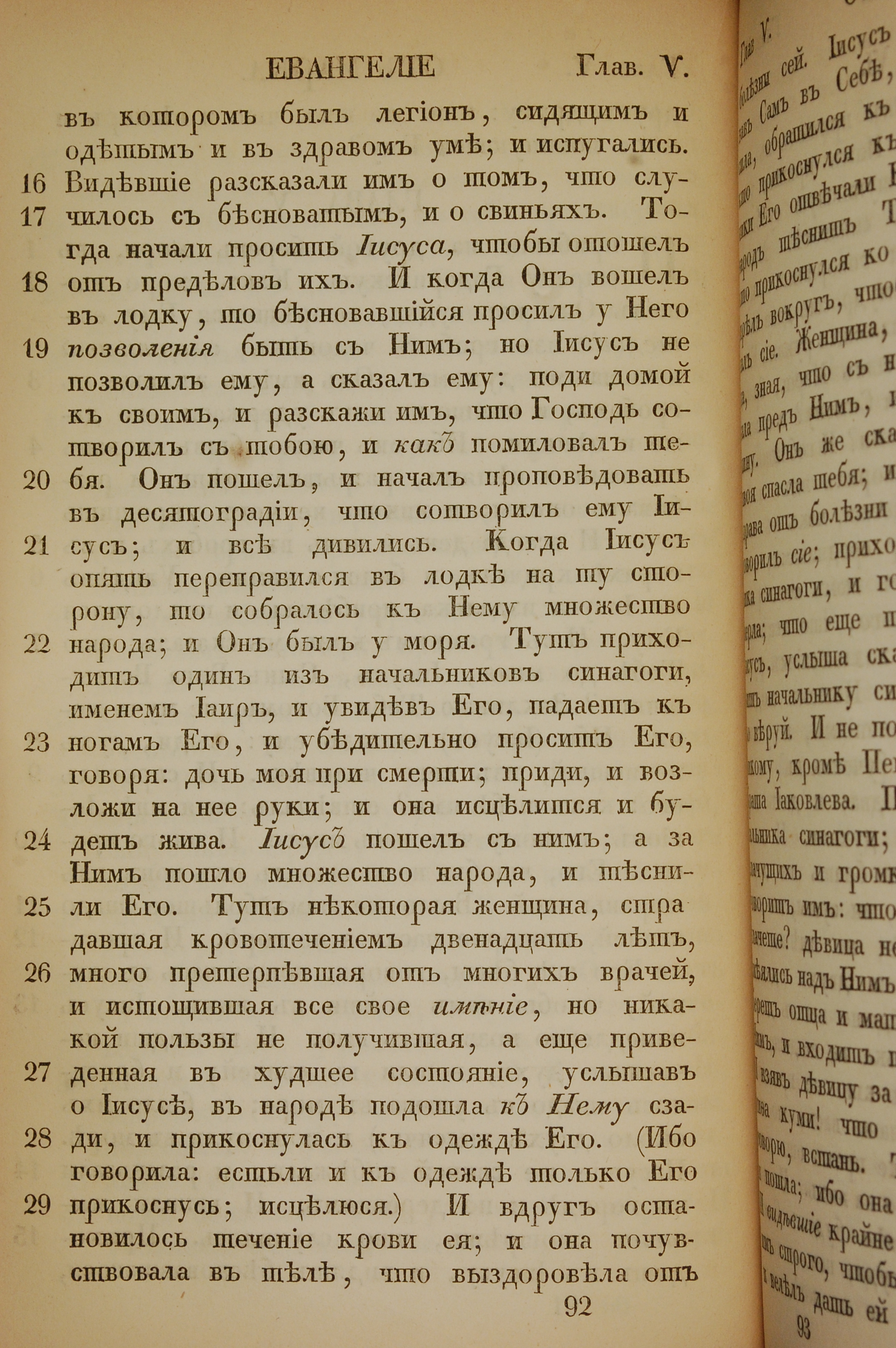 1855年俄文新約全書 馬可福音 5 章 16 節到 5 章 29 節
