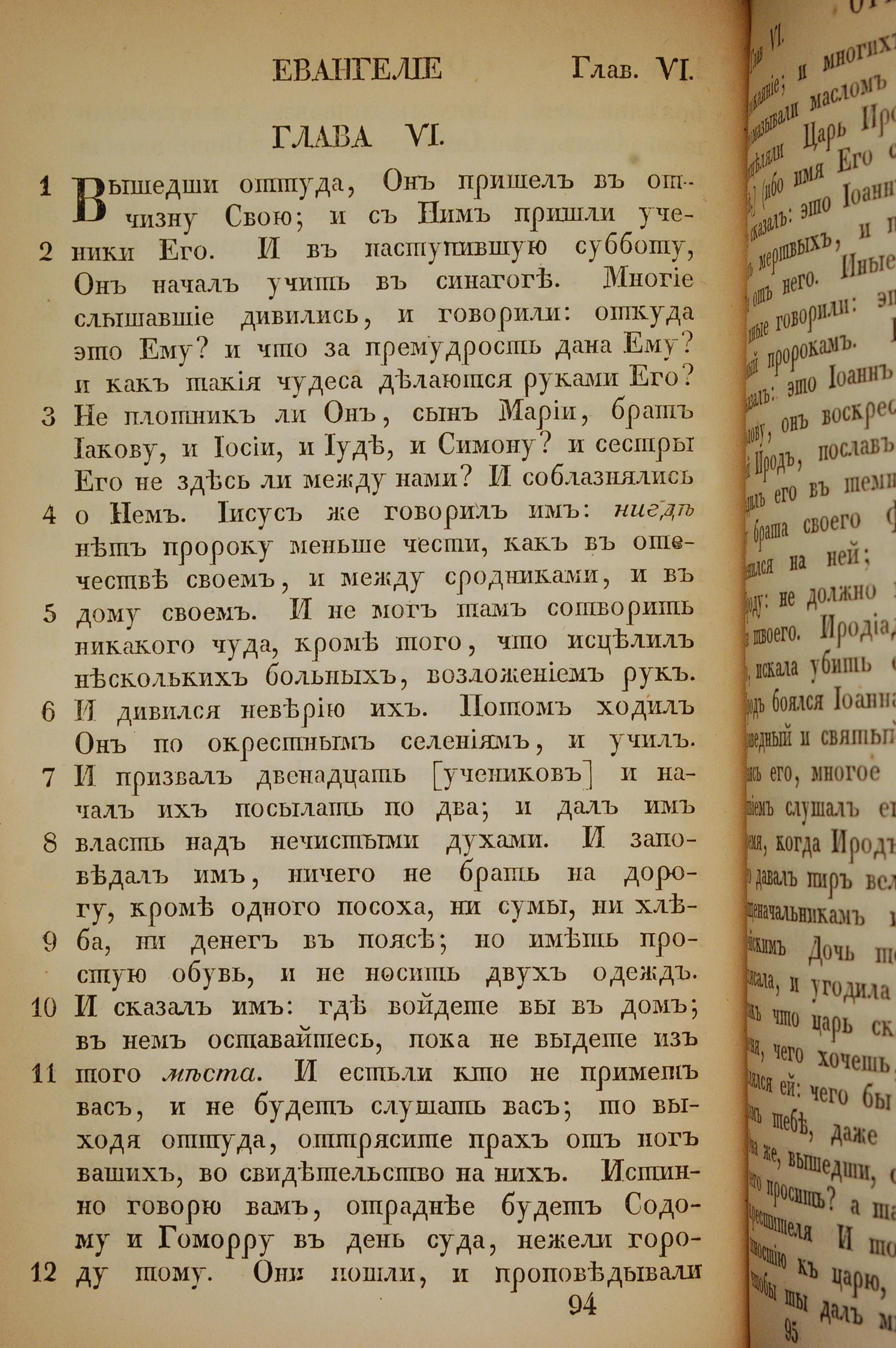 1855年俄文新約全書 馬可福音 6 章 1 節到 6 章 12 節