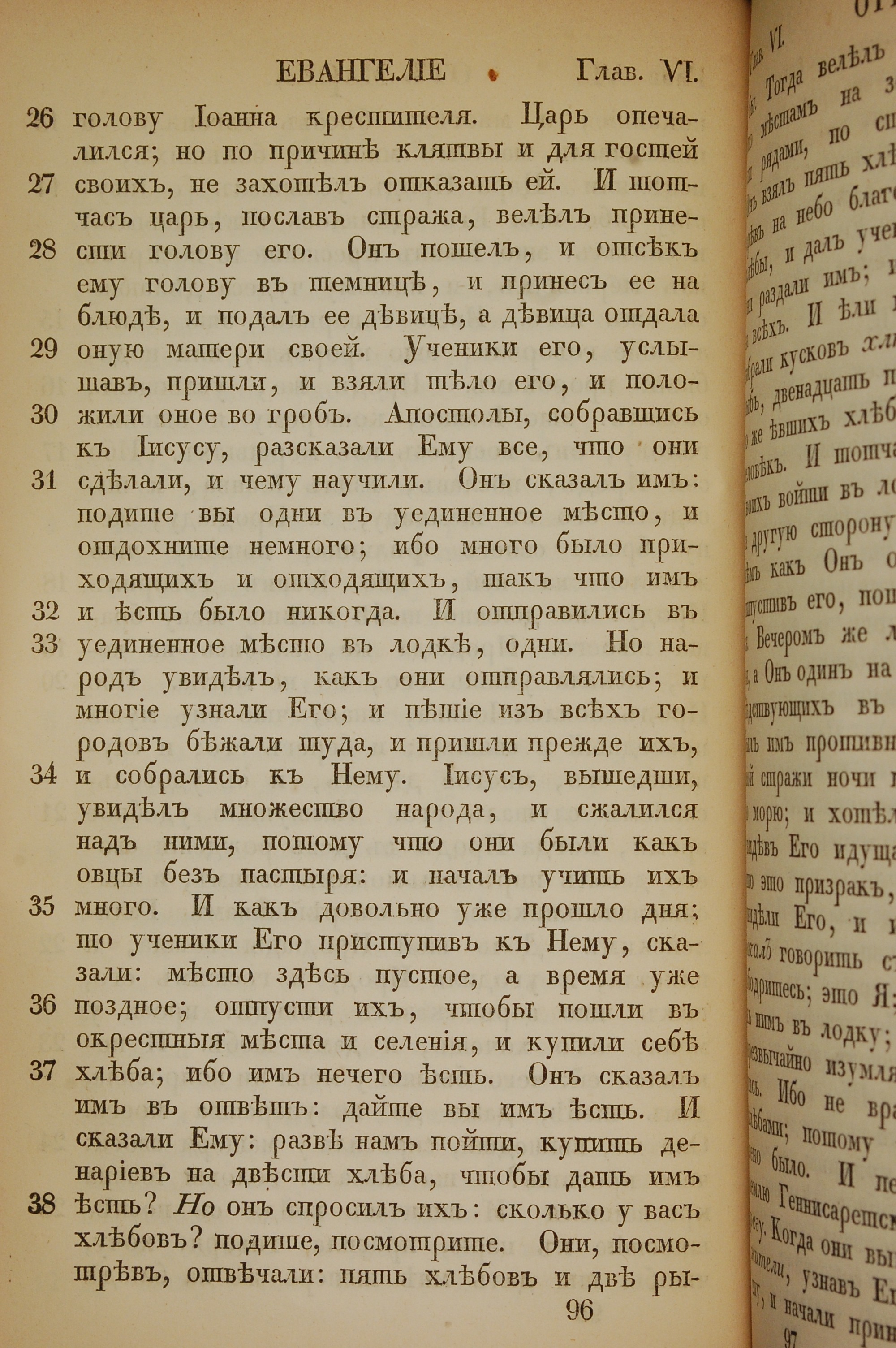 1855年俄文新約全書 馬可福音 6 章 26 節到 6 章 38 節