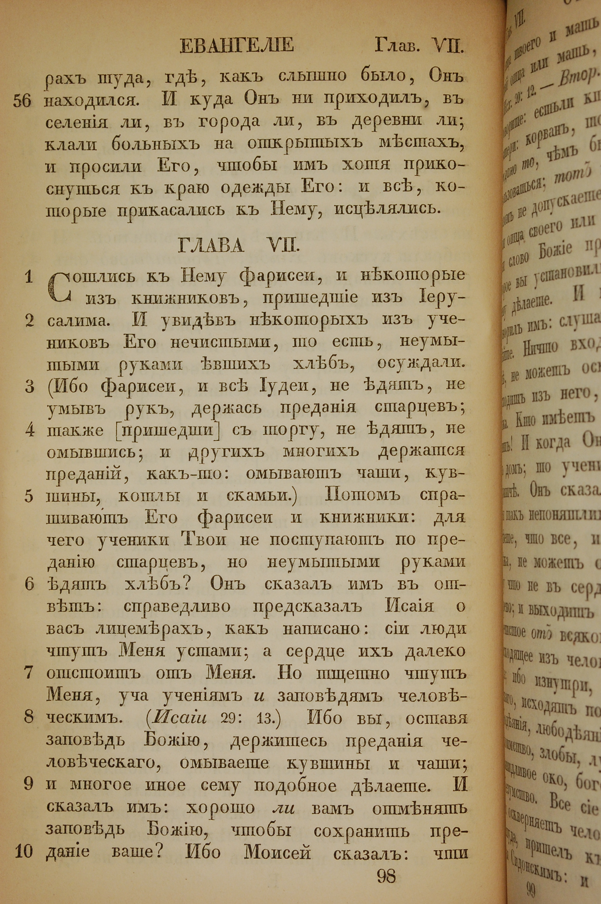 1855年俄文新約全書 馬可福音 6 章 56 節到 7 章 10 節