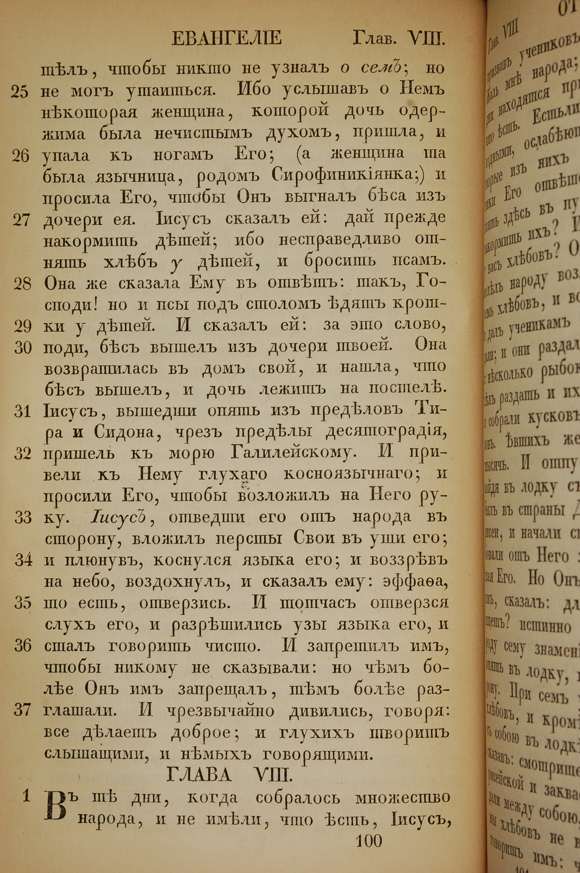 1855年俄文新約全書 馬可福音 7 章 25 節到 8 章 1 節