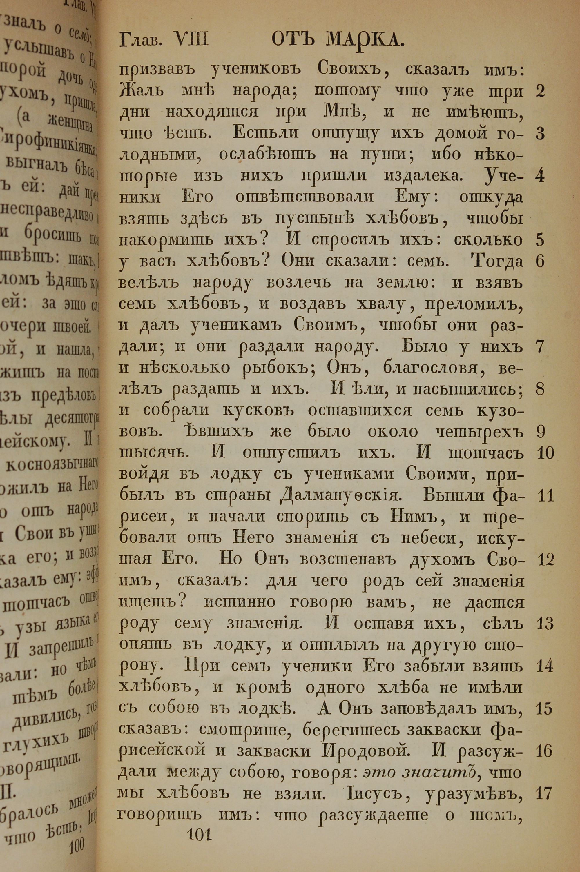 1855年俄文新約全書 馬可福音 8 章 2 節到 8 章 17 節