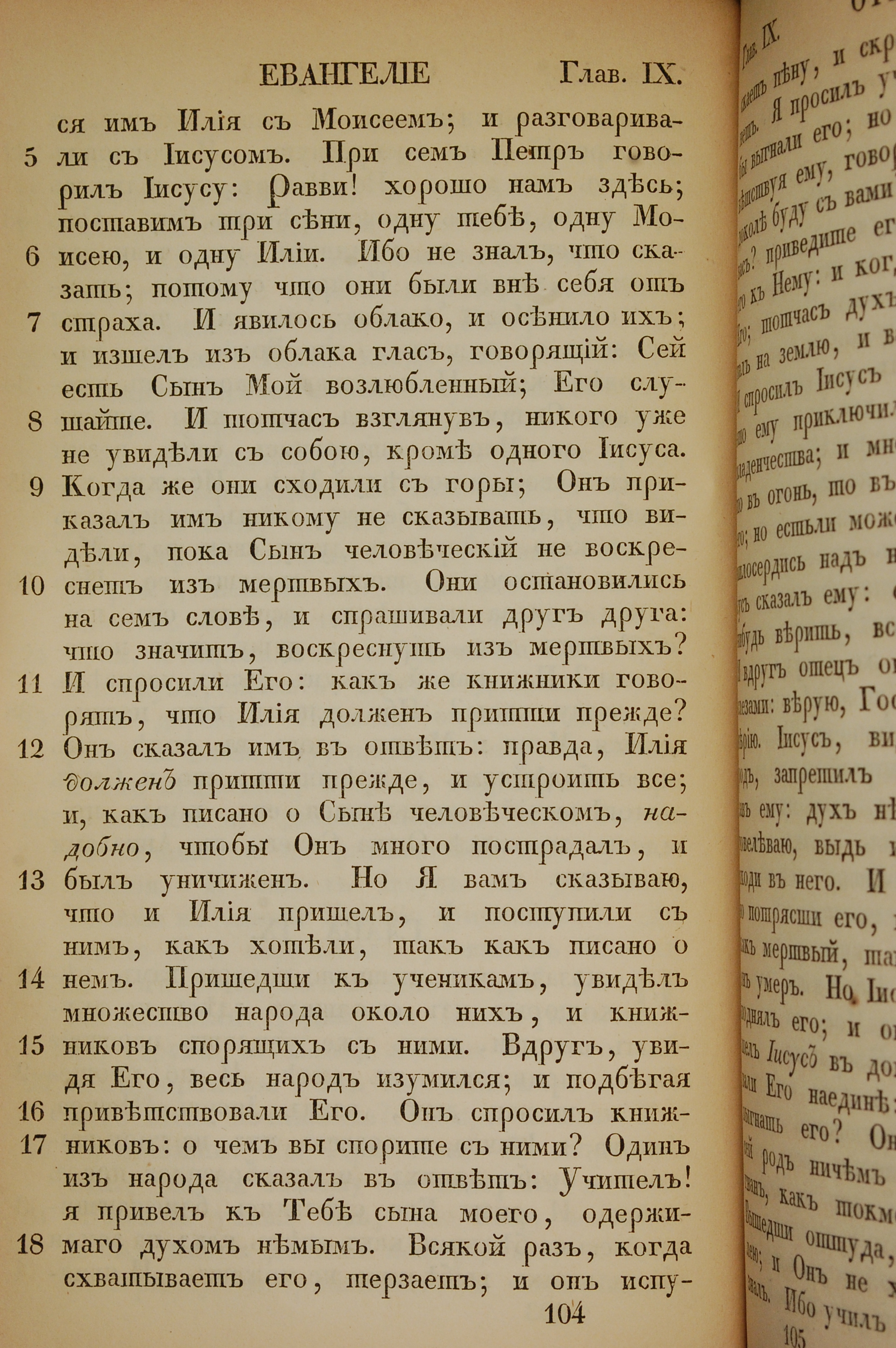 1855年俄文新約全書 馬可福音 9 章 5 節到 9 章 18 節