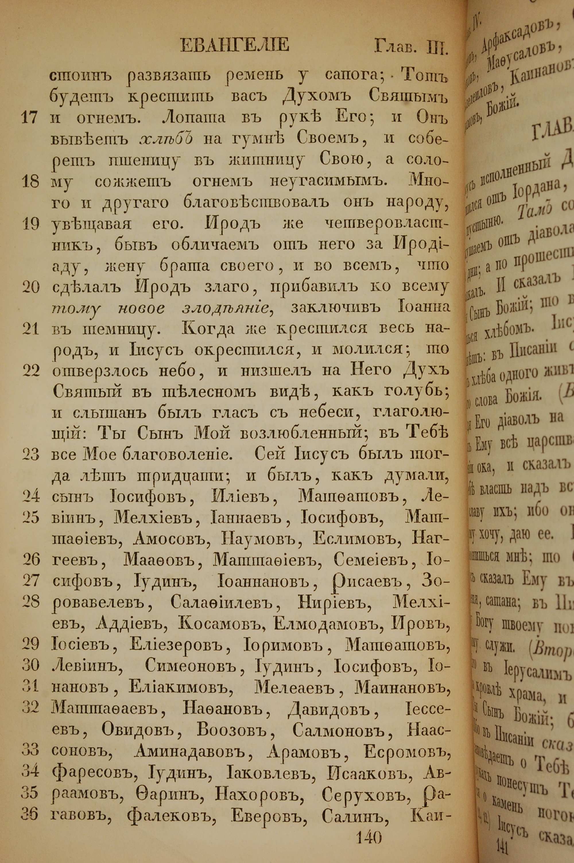 1855年俄文新約全書 路加福音 3 章 17 節到 3 章 36 節