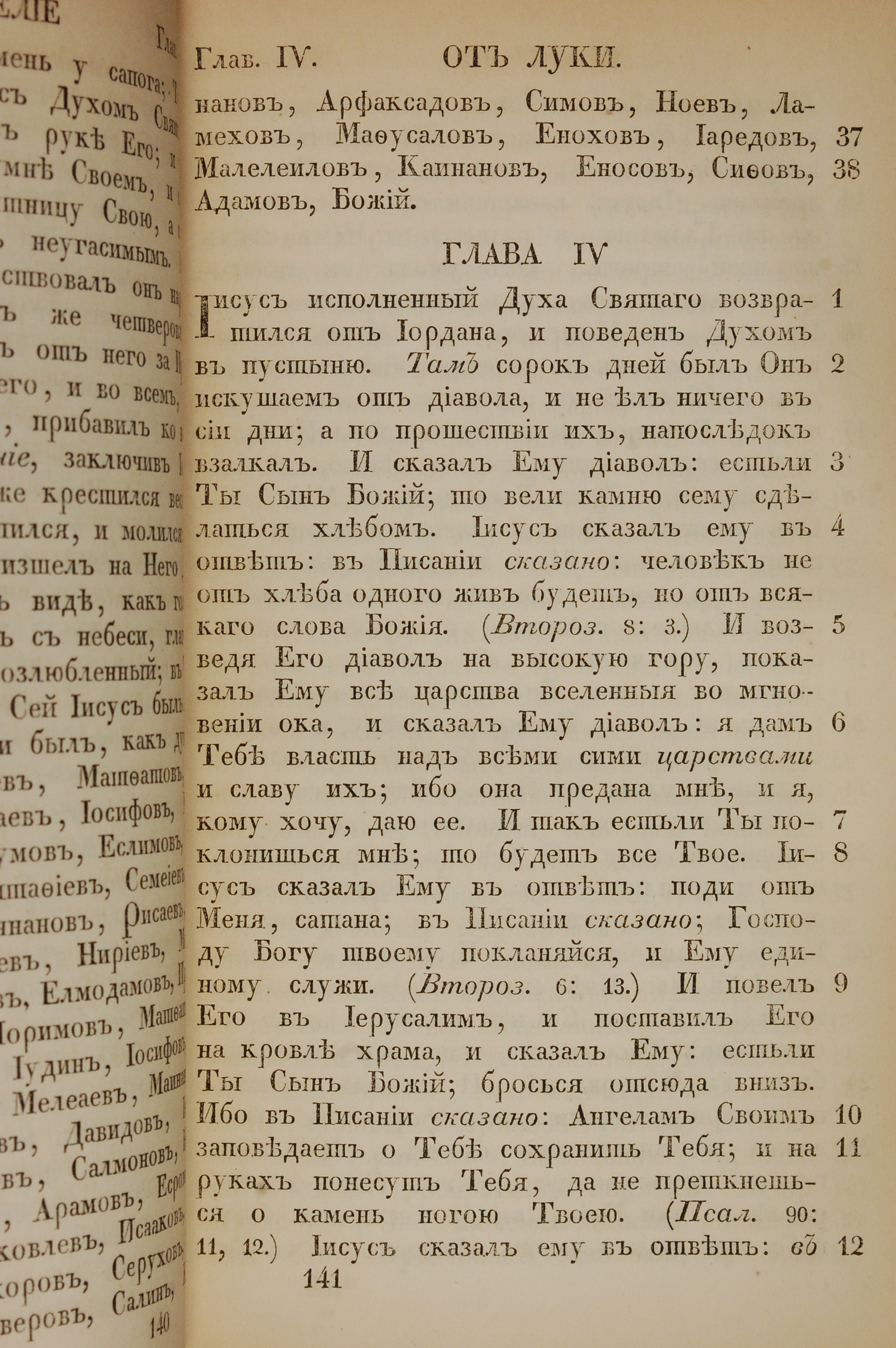 1855年俄文新約全書 路加福音 3 章 37 節到 4 章 12 節