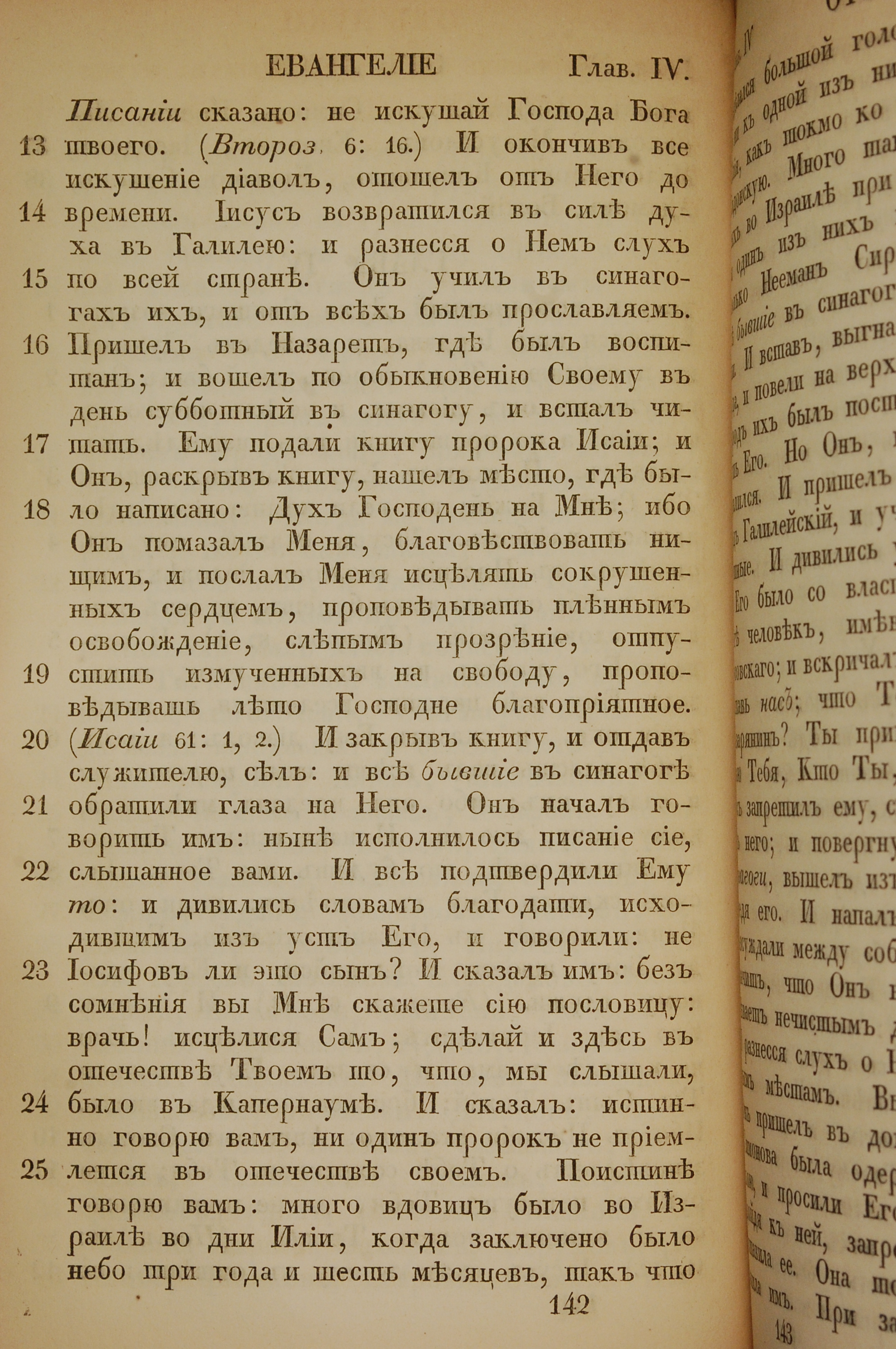 1855年俄文新約全書 路加福音 4 章 13 節到 4 章 25 節