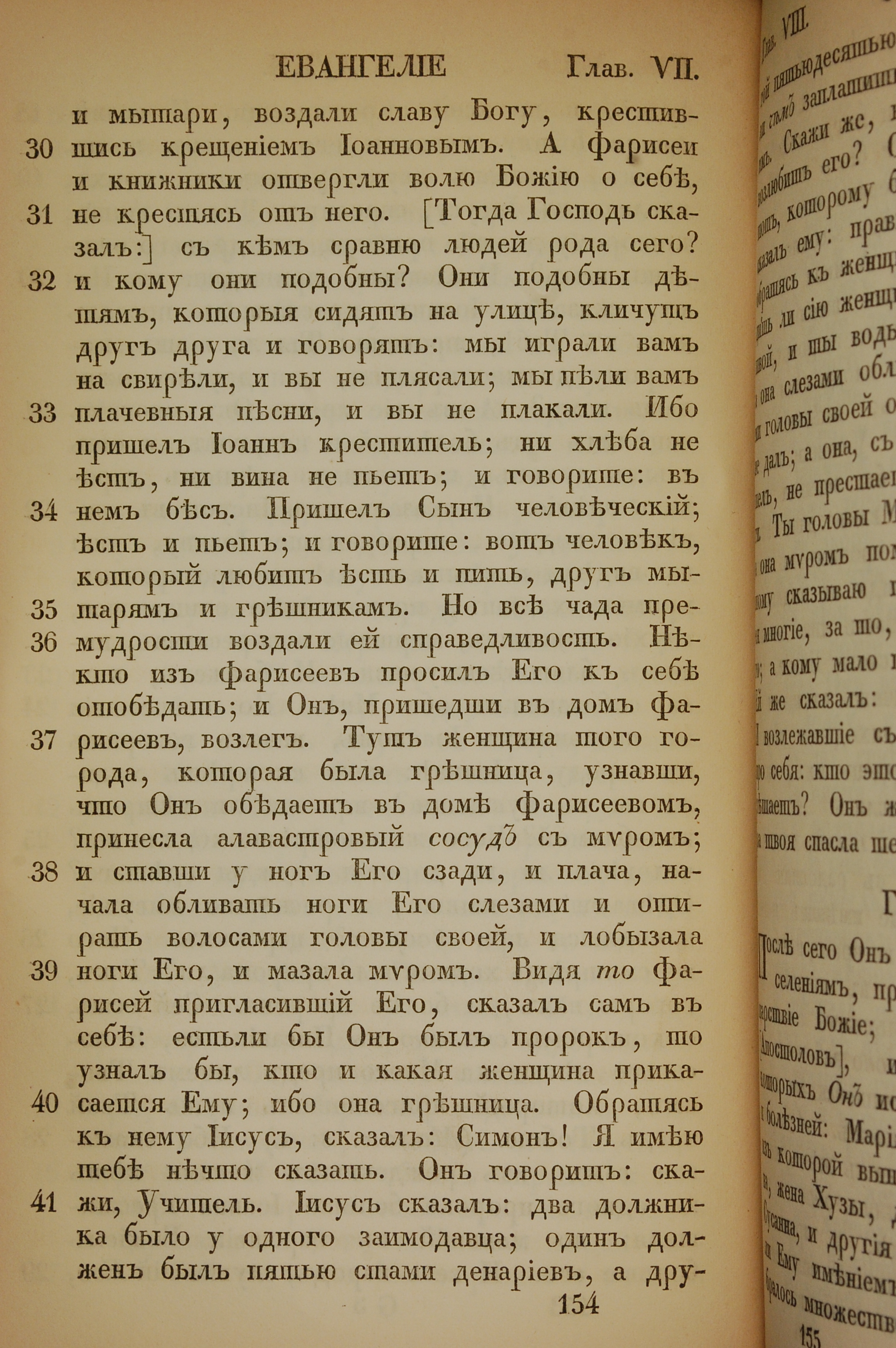 1855年俄文新約全書 路加福音 7 章 30 節到 7 章 41 節