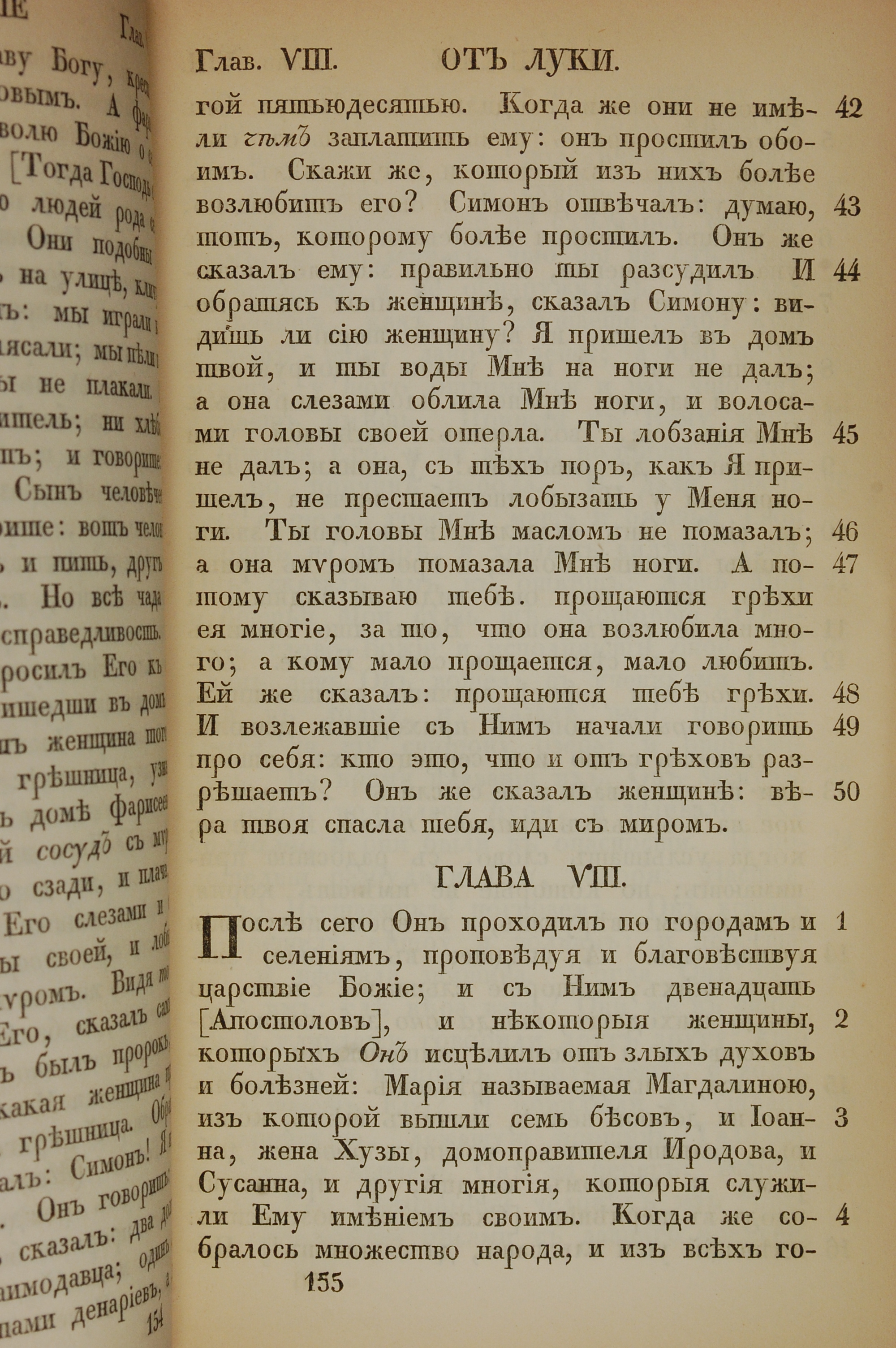 1855年俄文新約全書 路加福音 7 章 42 節到 8 章 4 節