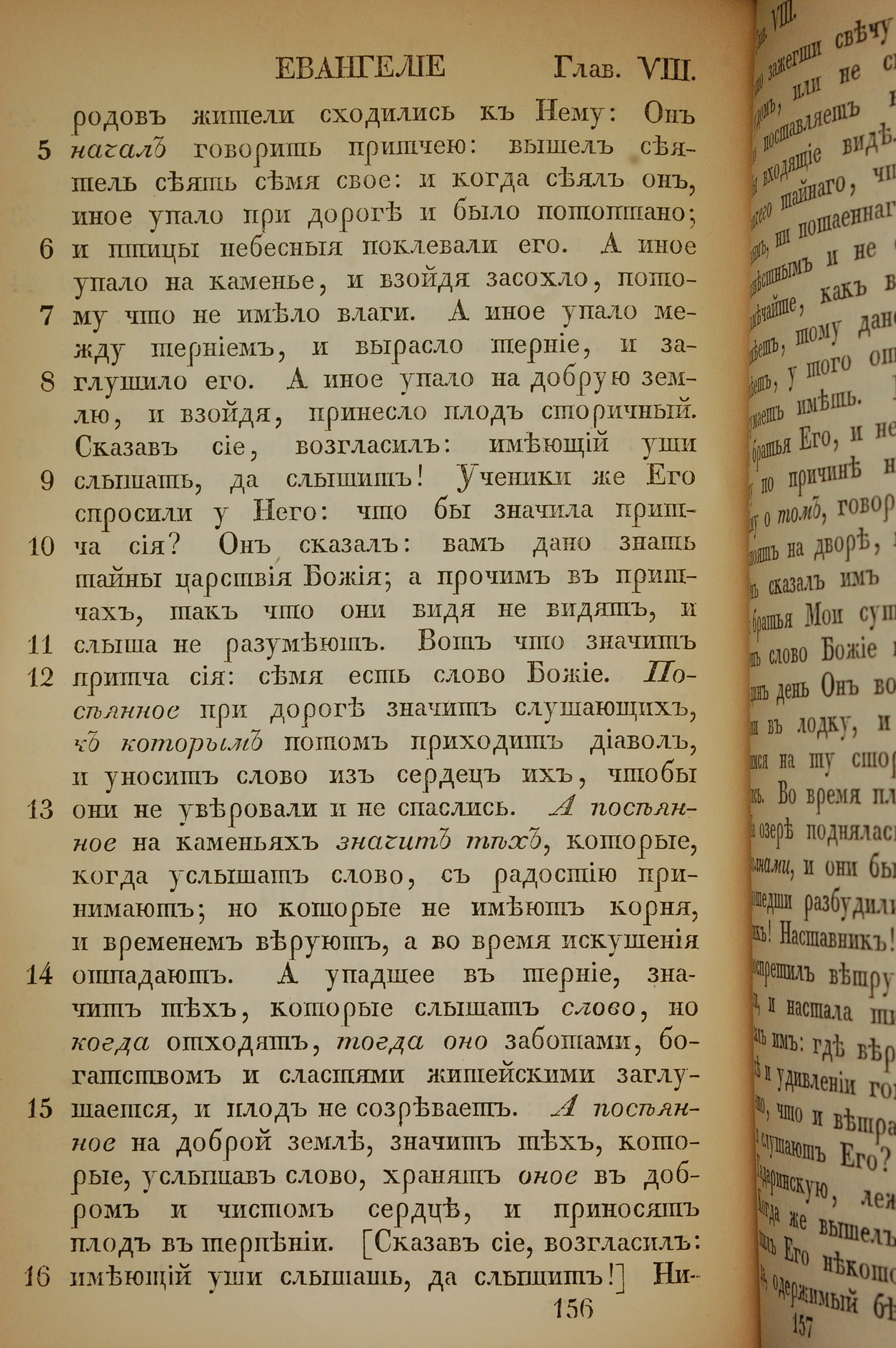 1855年俄文新約全書 路加福音 8 章 5 節到 8 章 16 節