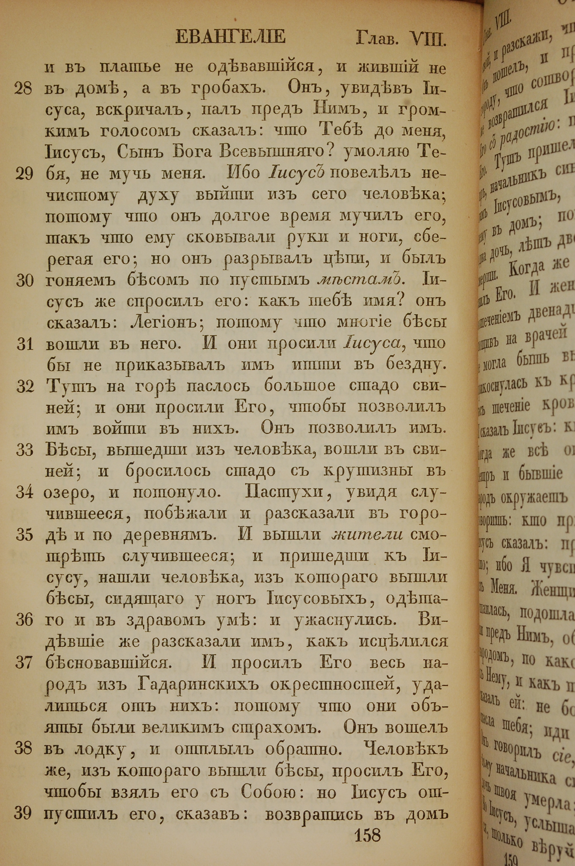 1855年俄文新約全書 路加福音 8 章 28 節到 8 章 39 節