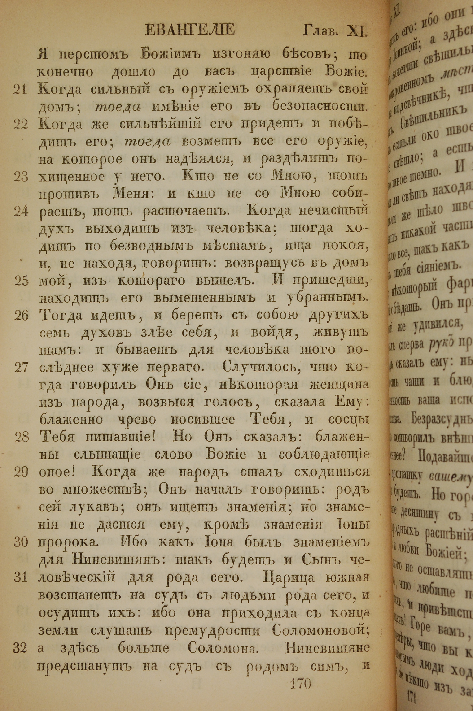 1855年俄文新約全書 路加福音 11 章 21 節到 11 章 32 節