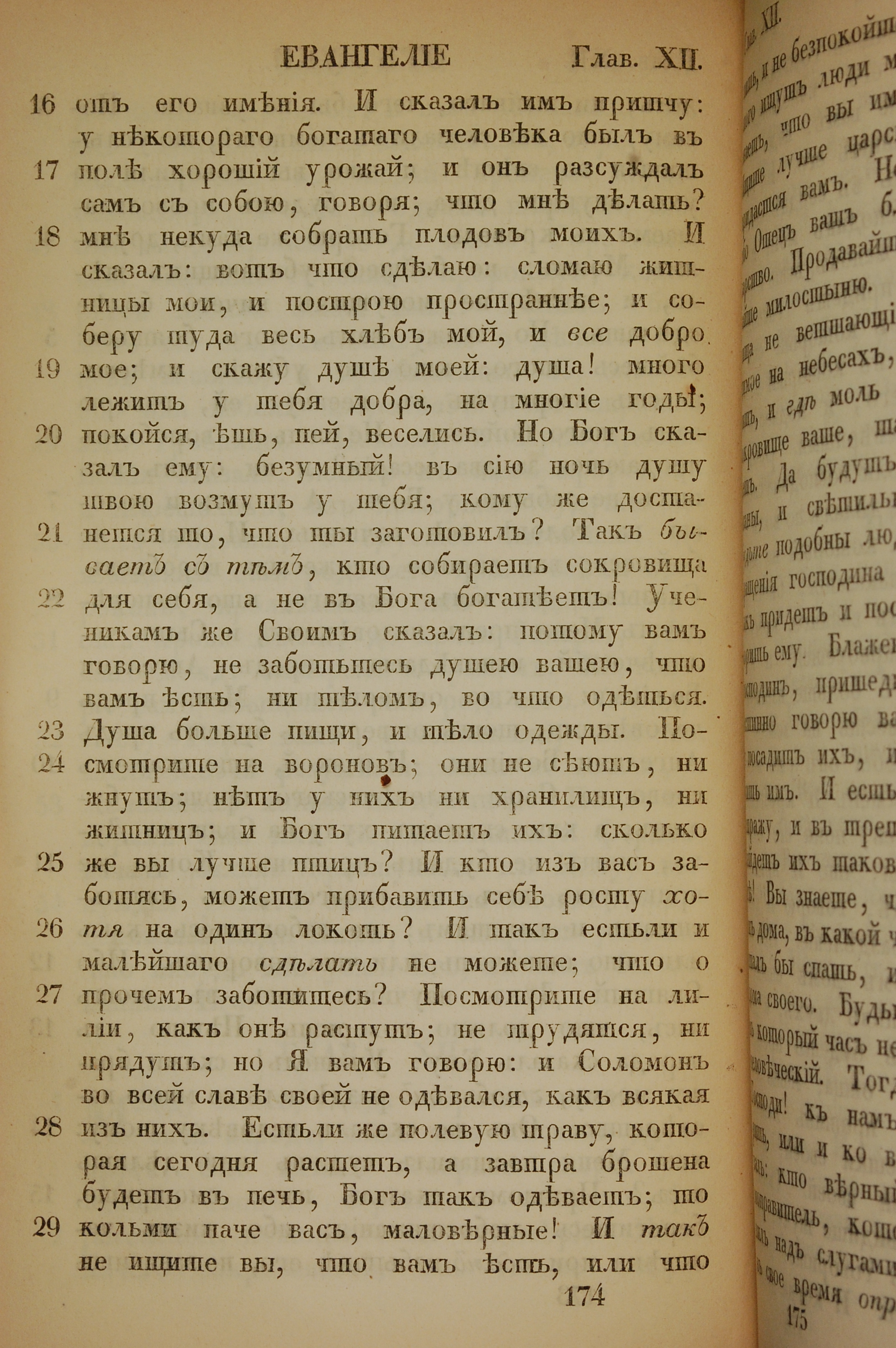 1855年俄文新約全書 路加福音 12 章 16 節到 12 章 29 節