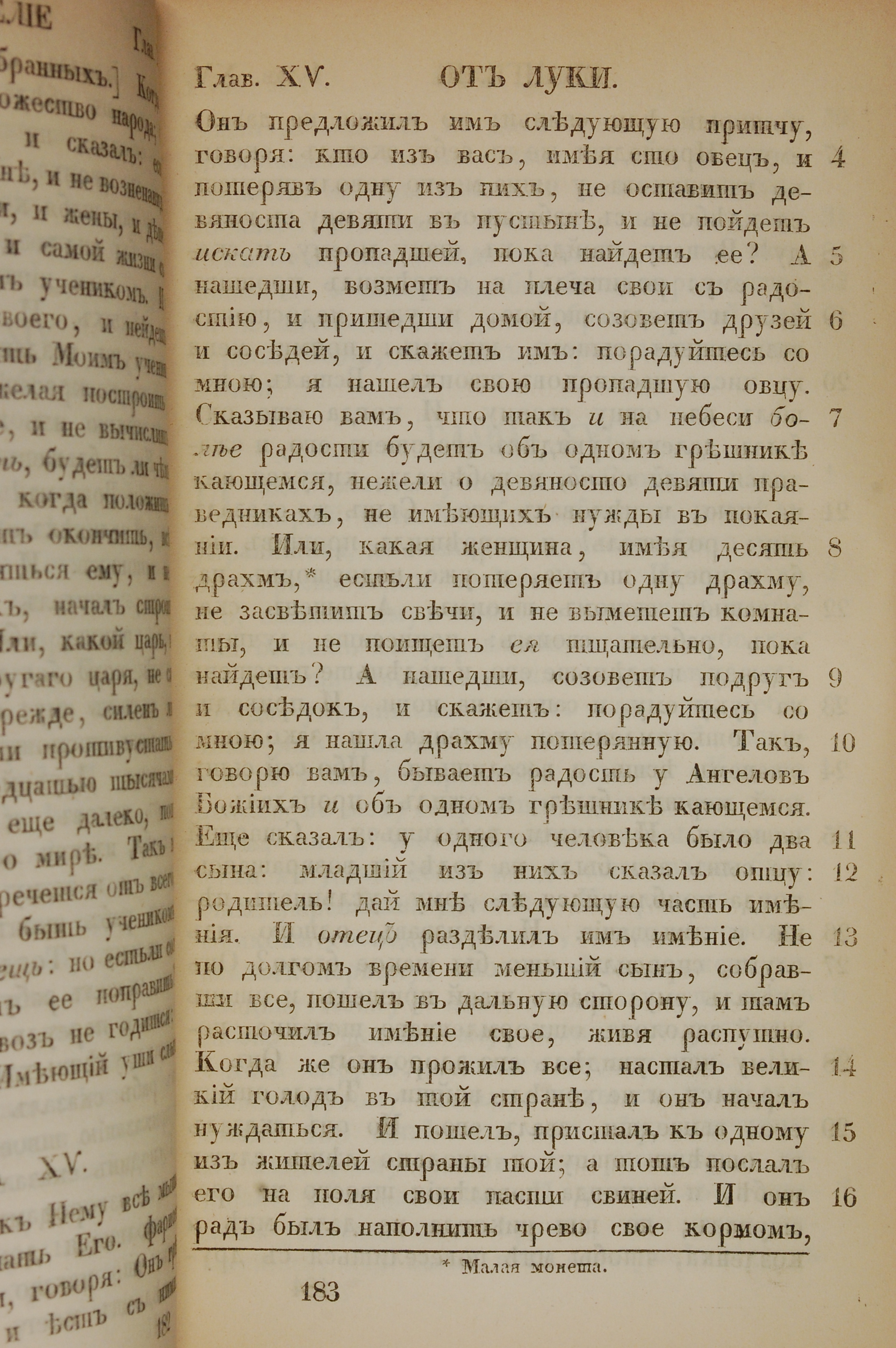 1855年俄文新約全書 路加福音 15 章 4 節到 15 章 16 節