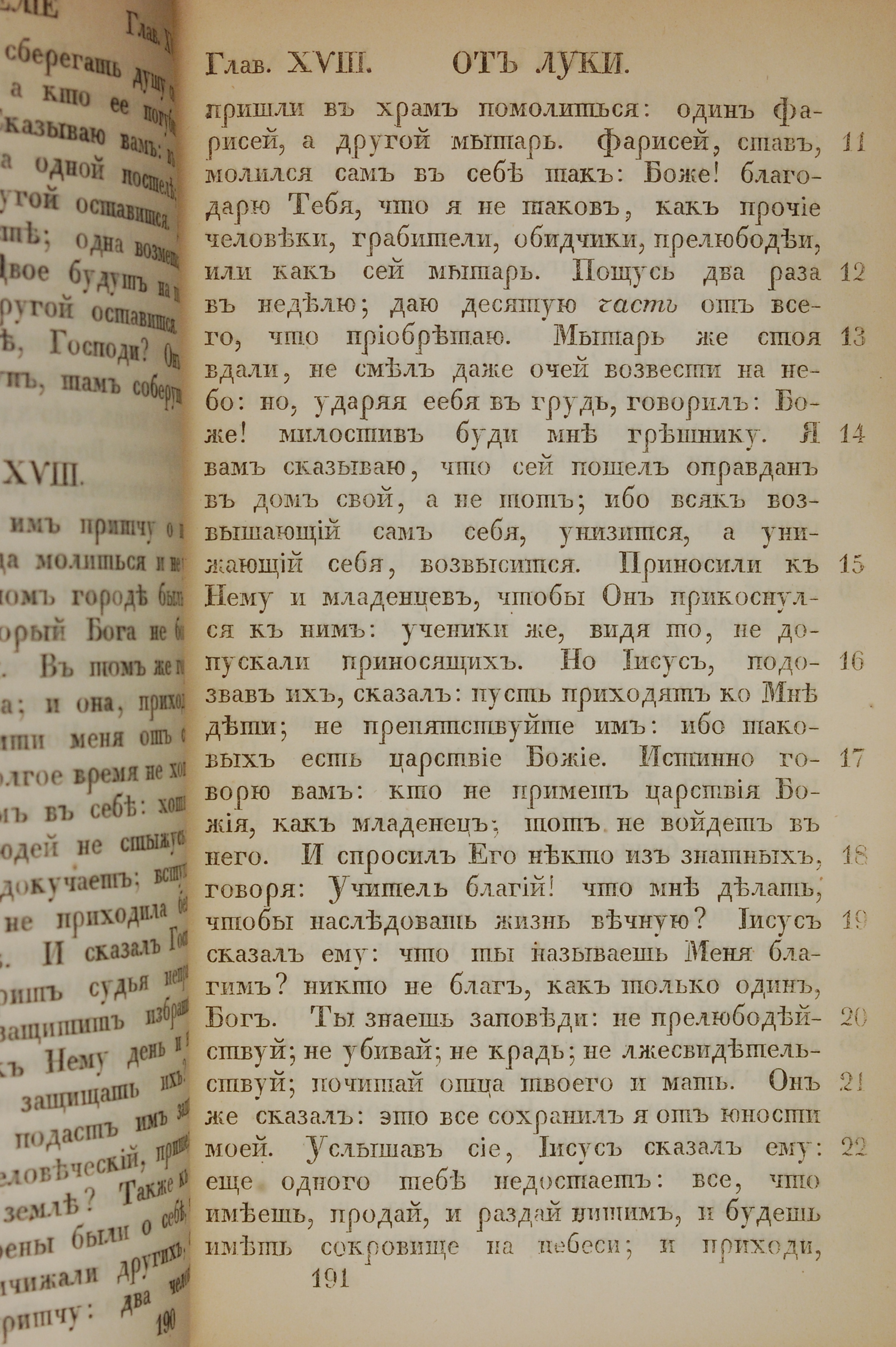 1855年俄文新約全書 路加福音 18 章 11 節到 18 章 22 節