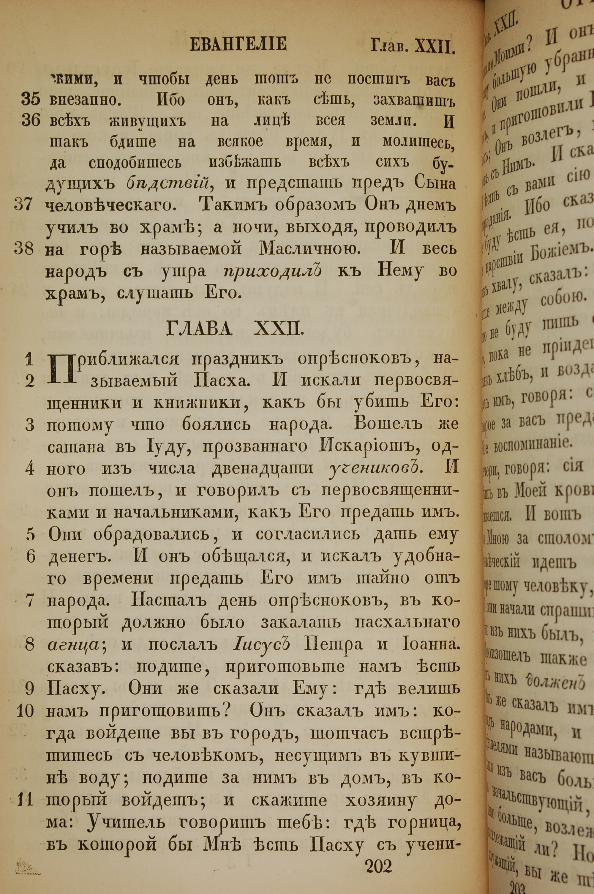 1855年俄文新約全書 路加福音 21 章 35 節到 22 章 11 節