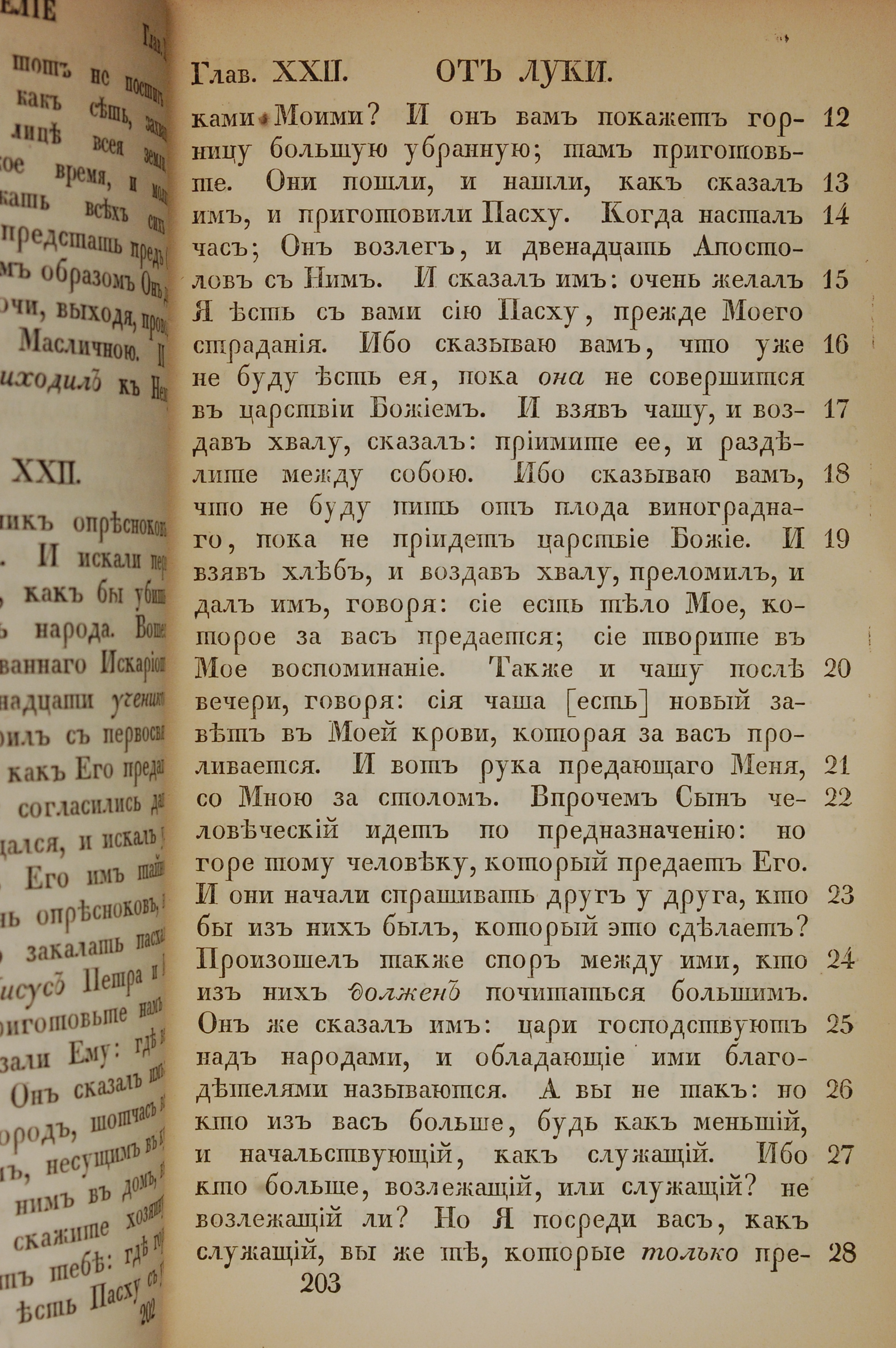 1855年俄文新約全書 路加福音 22 章 12 節到 22 章 28 節