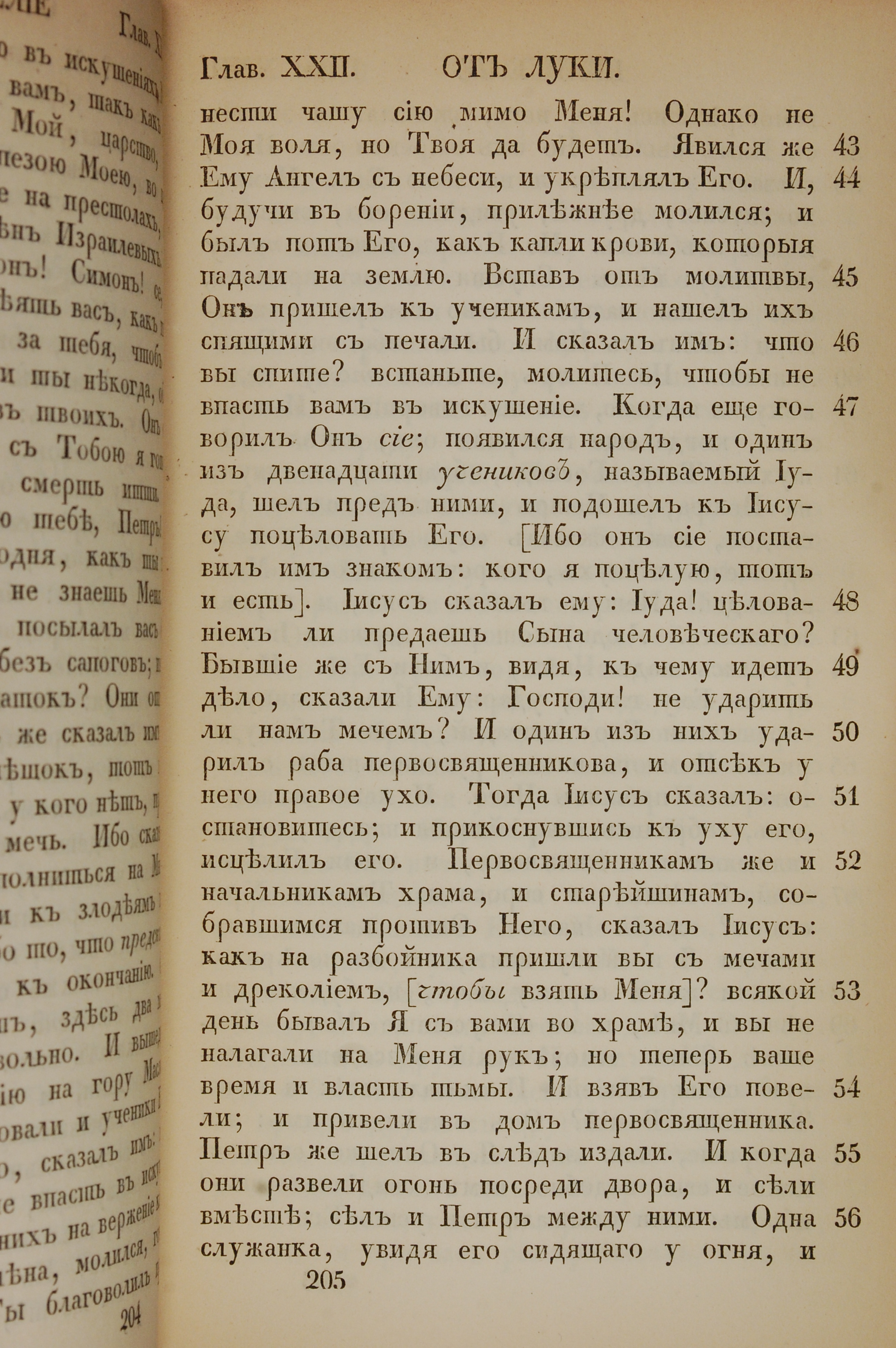 1855年俄文新約全書 路加福音 22 章 43 節到 22 章 56 節