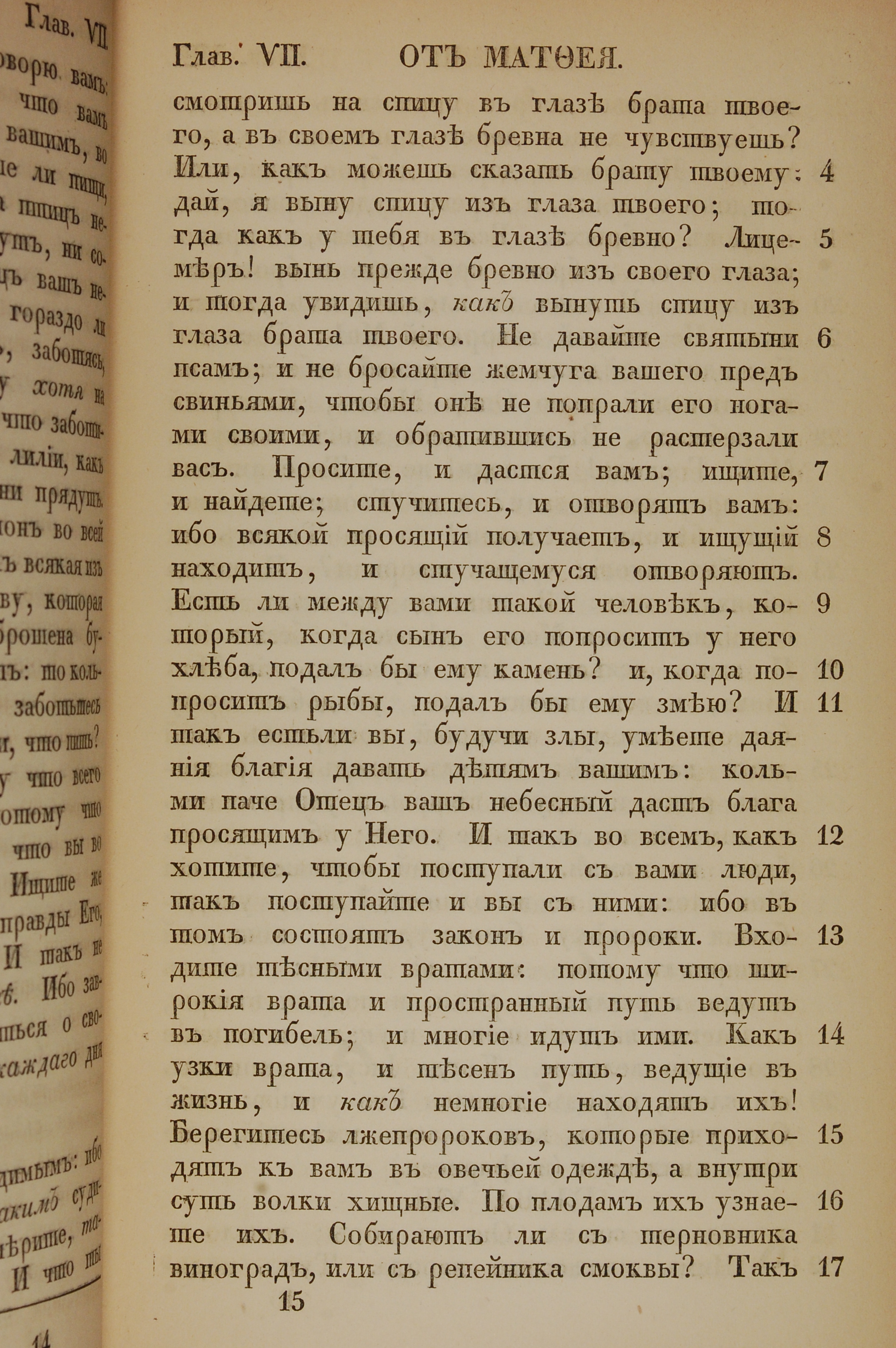 1855年俄文新約全書 馬太福音 7 章 4 節到 7 章 17 節