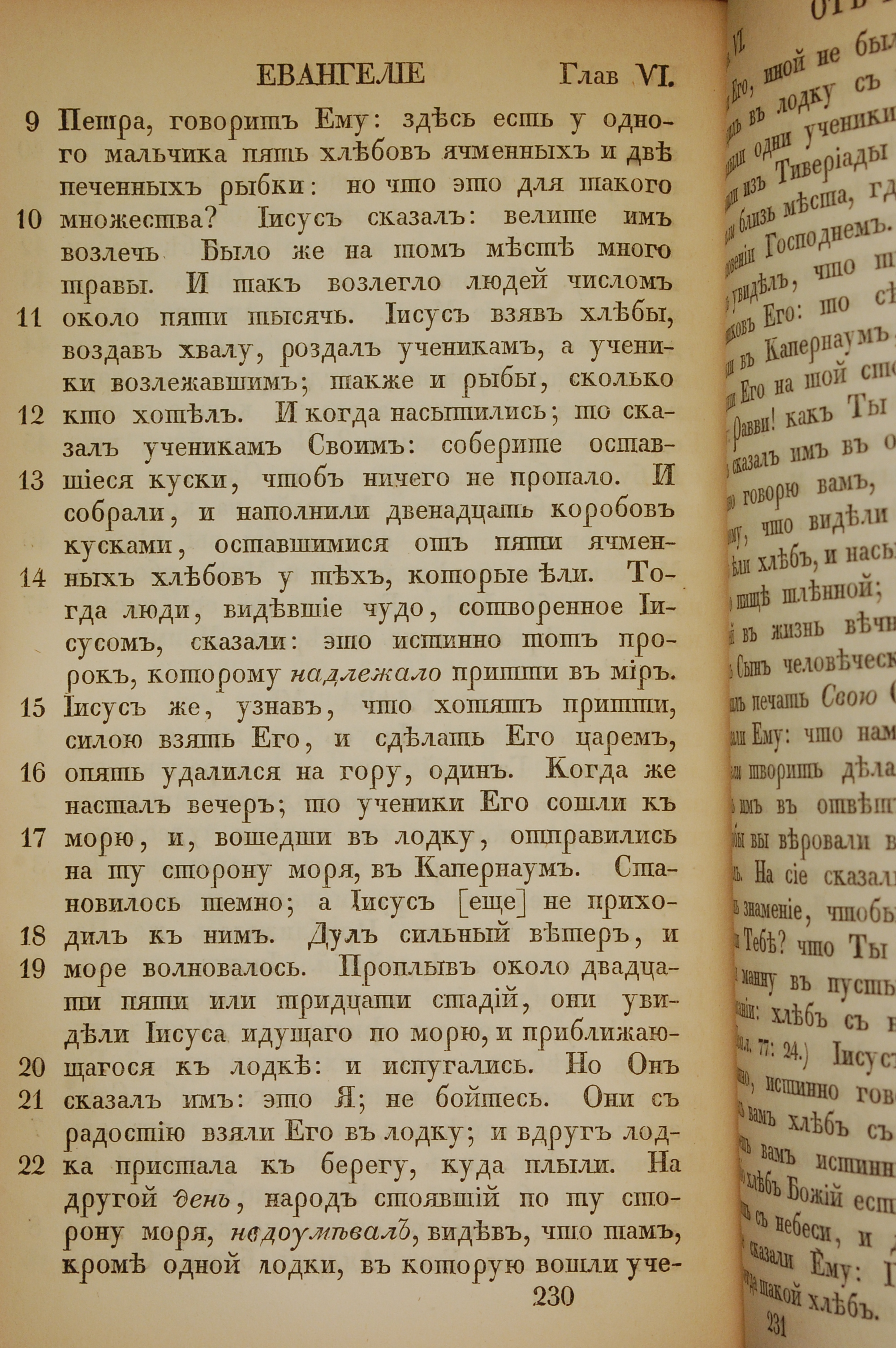1855年俄文新約全書 約翰福音 6 章 9 節到 6 章 22 節