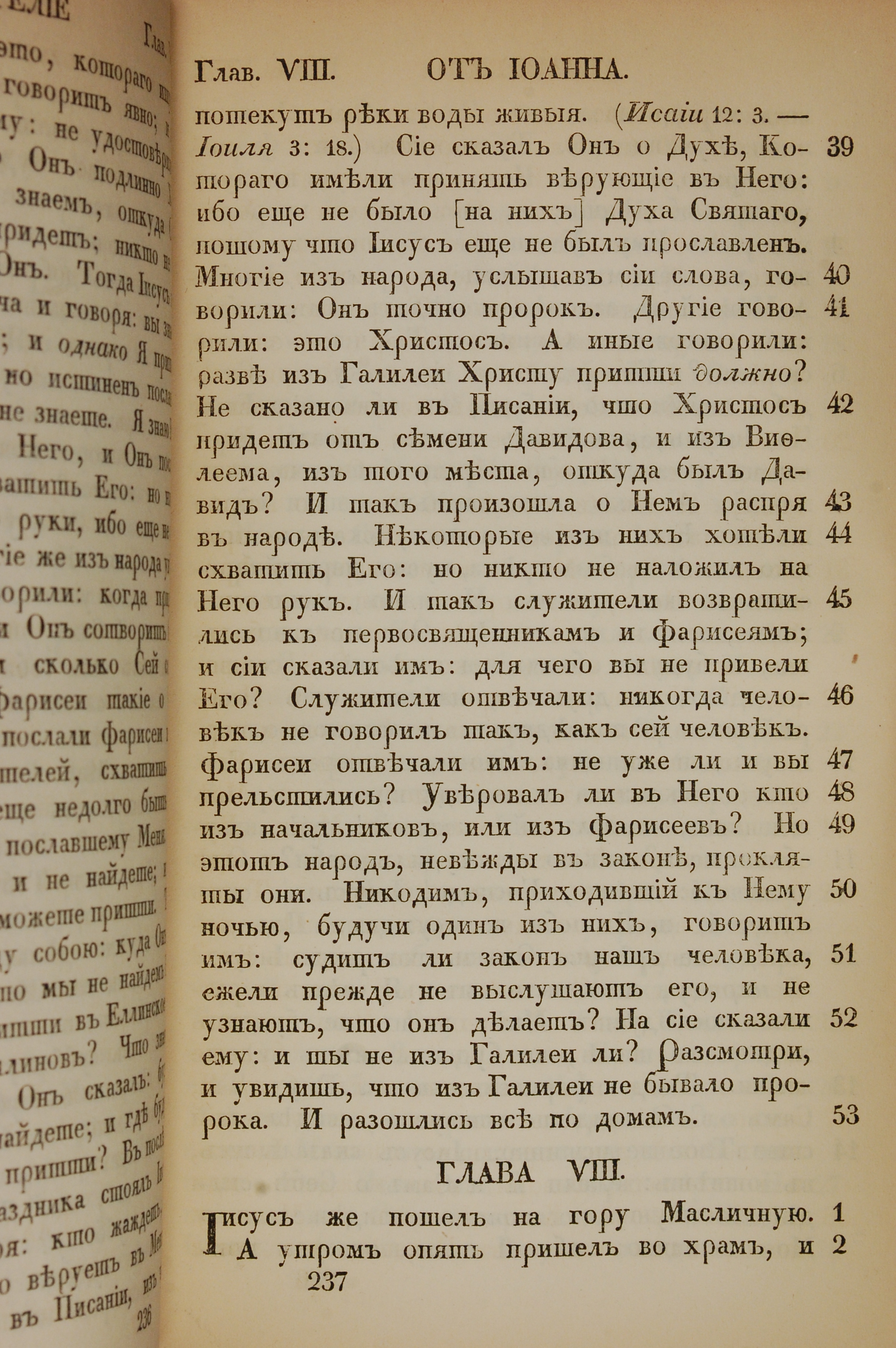 1855年俄文新約全書 約翰福音 7 章 39 節到 8 章 2 節