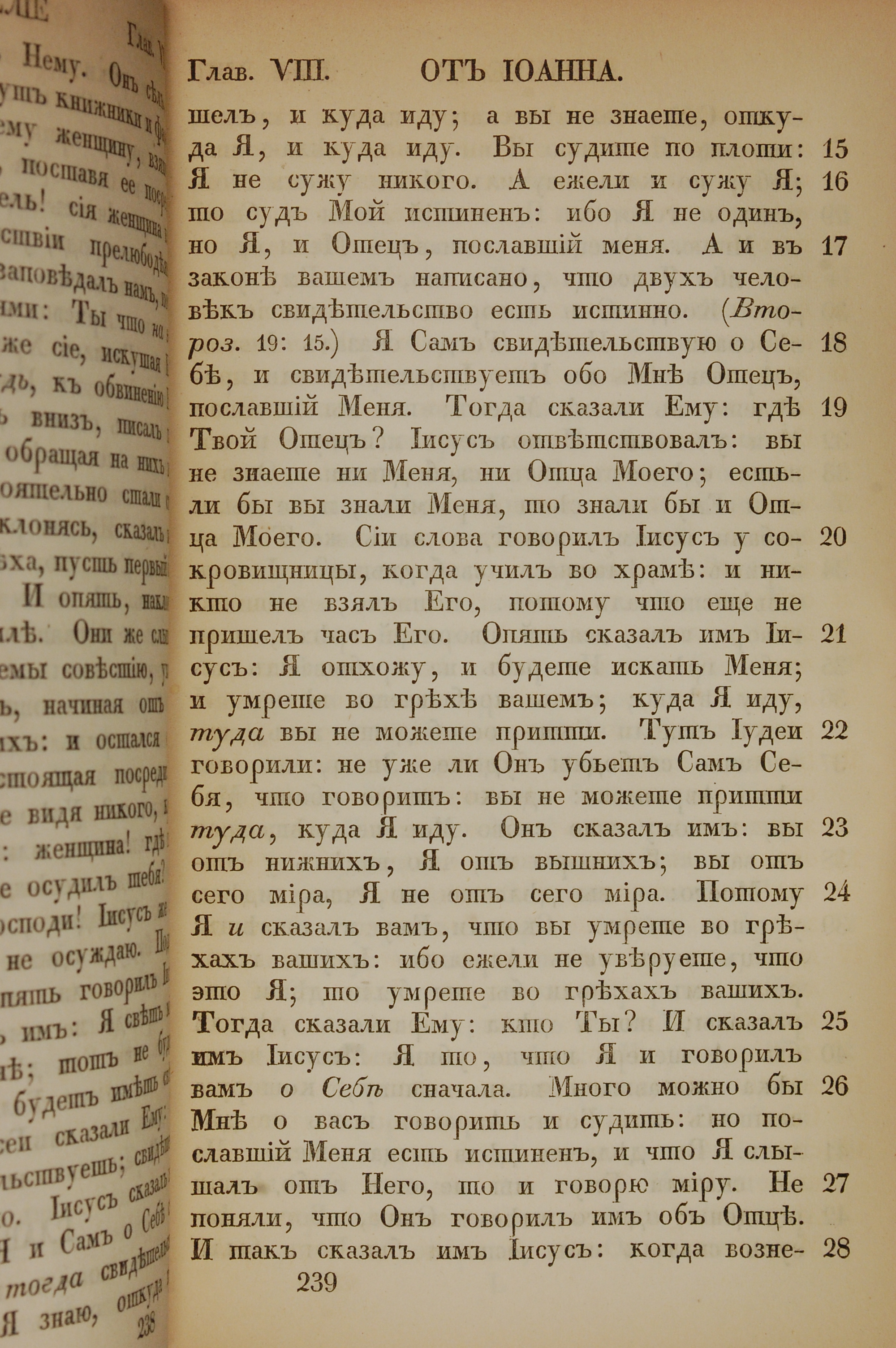 1855年俄文新約全書 約翰福音 8 章 15 節到 8 章 28 節
