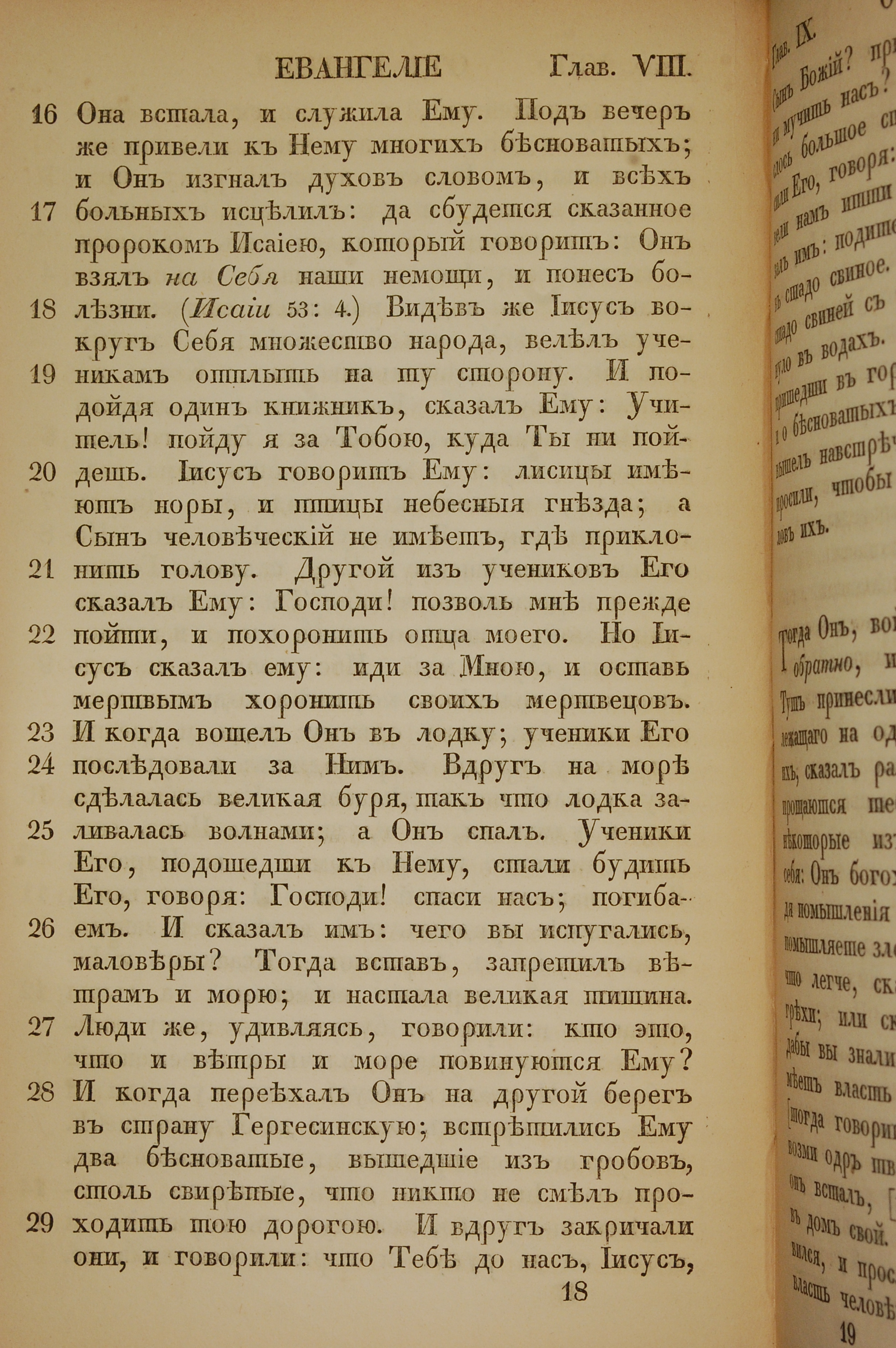 1855年俄文新約全書 馬太福音 8 章 16 節到 8 章 29 節