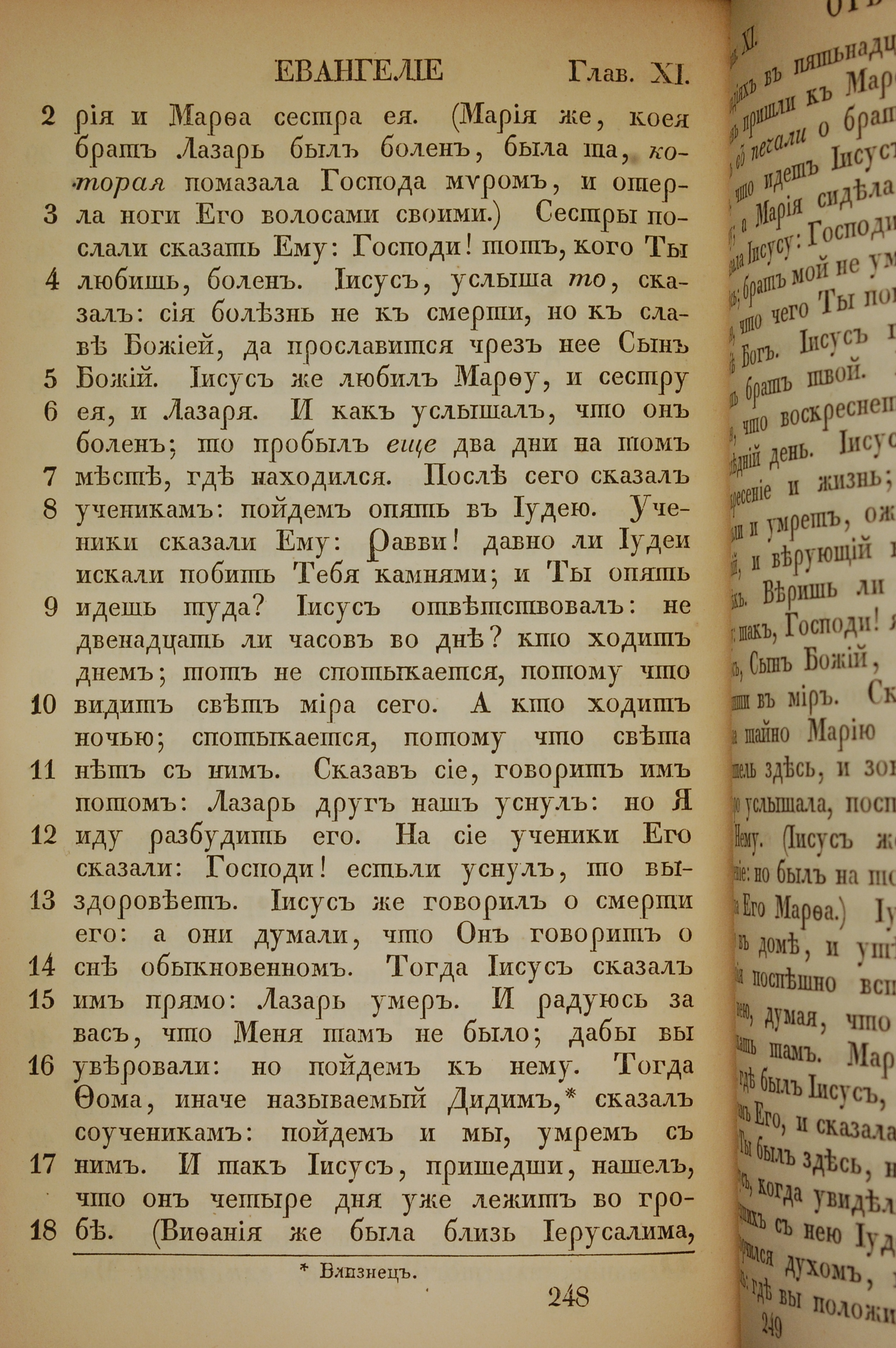 1855年俄文新約全書 約翰福音 11 章 2 節到 11 章 18 節