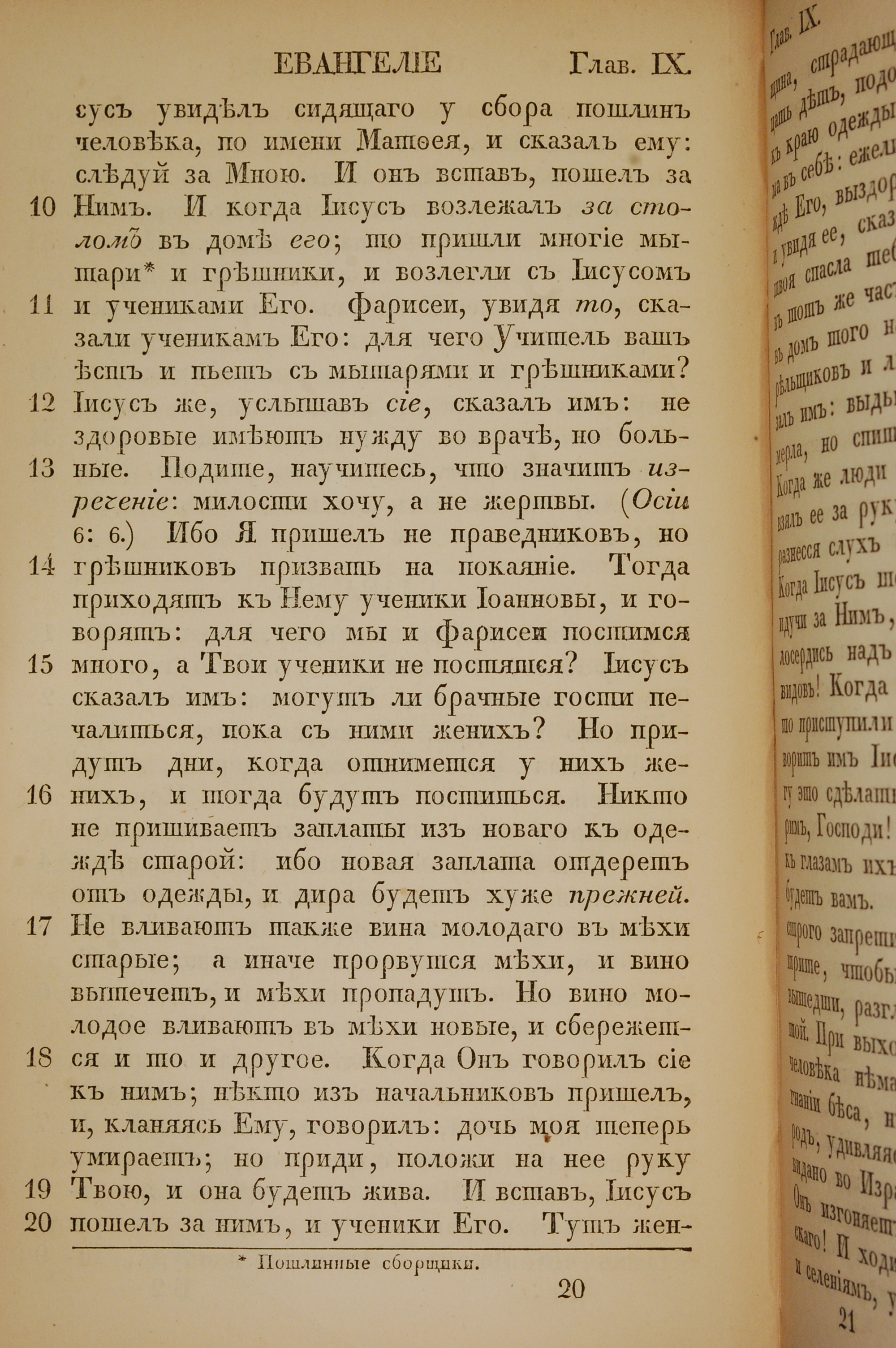 1855年俄文新約全書 馬太福音 9 章 10 節到 9 章 20 節