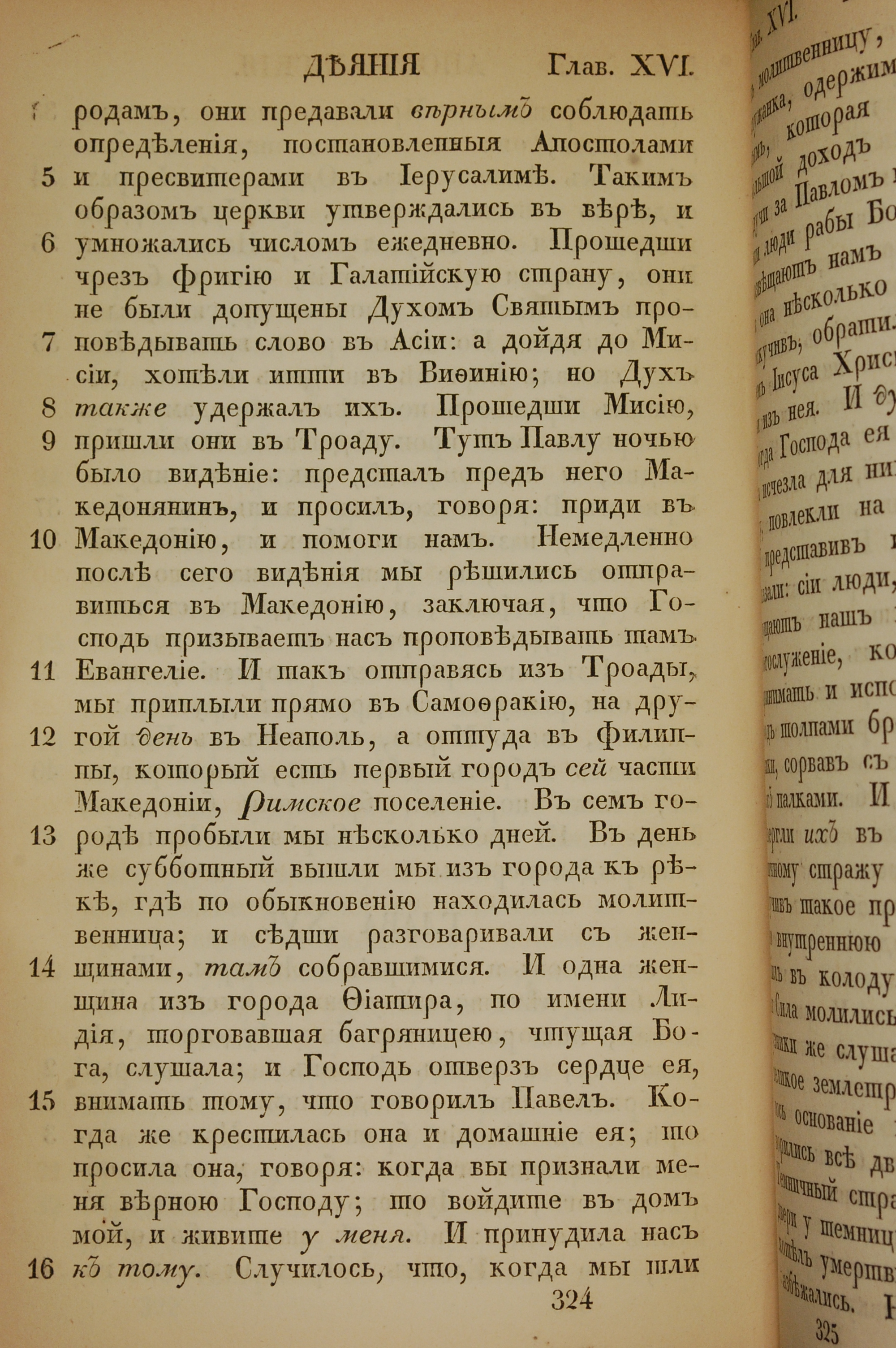 1855年俄文新約全書 使徒行傳 16 章 5 節到 16 章 16 節