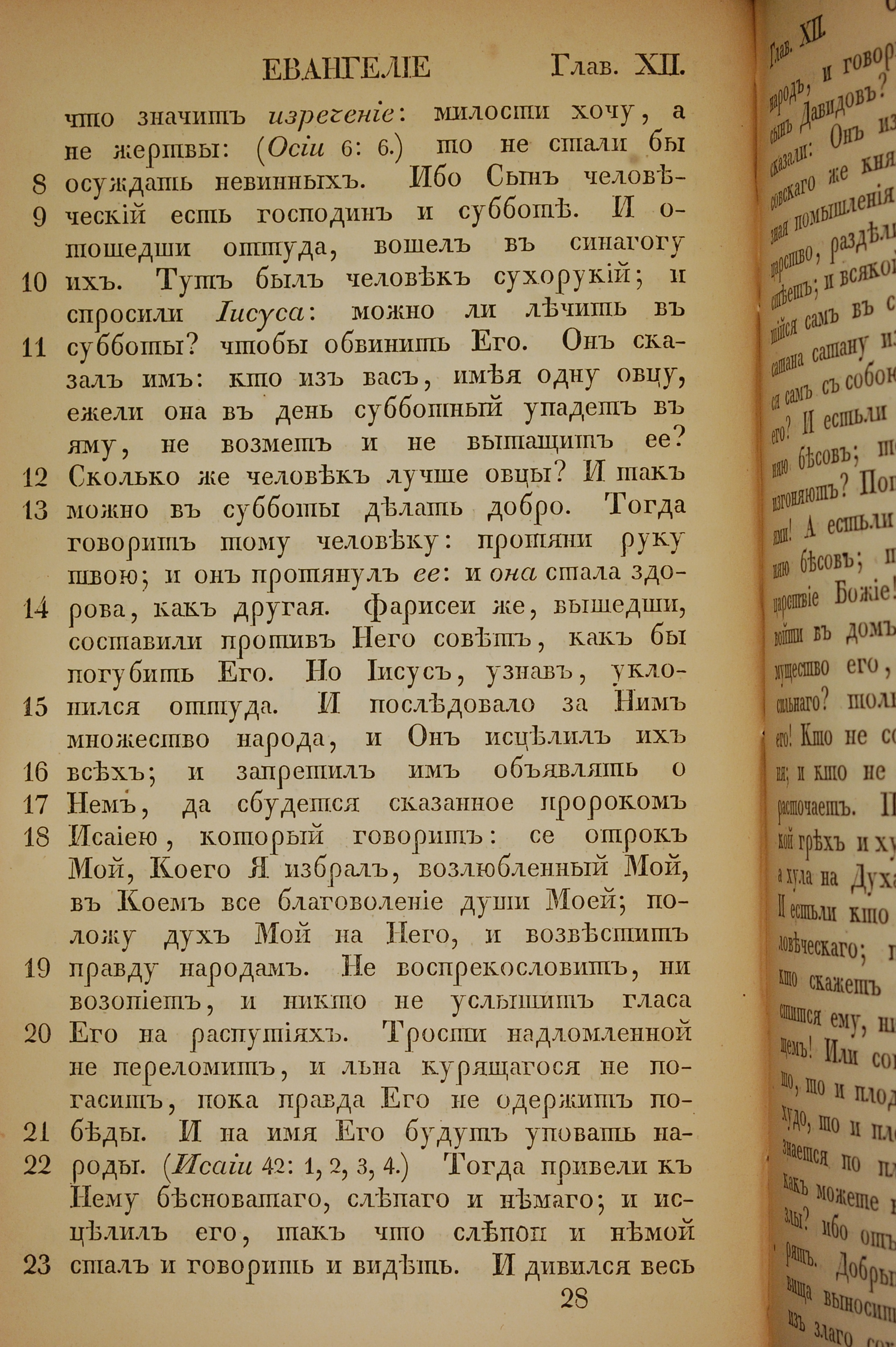 1855年俄文新約全書 馬太福音 12 章 8 節到 12 章 23 節