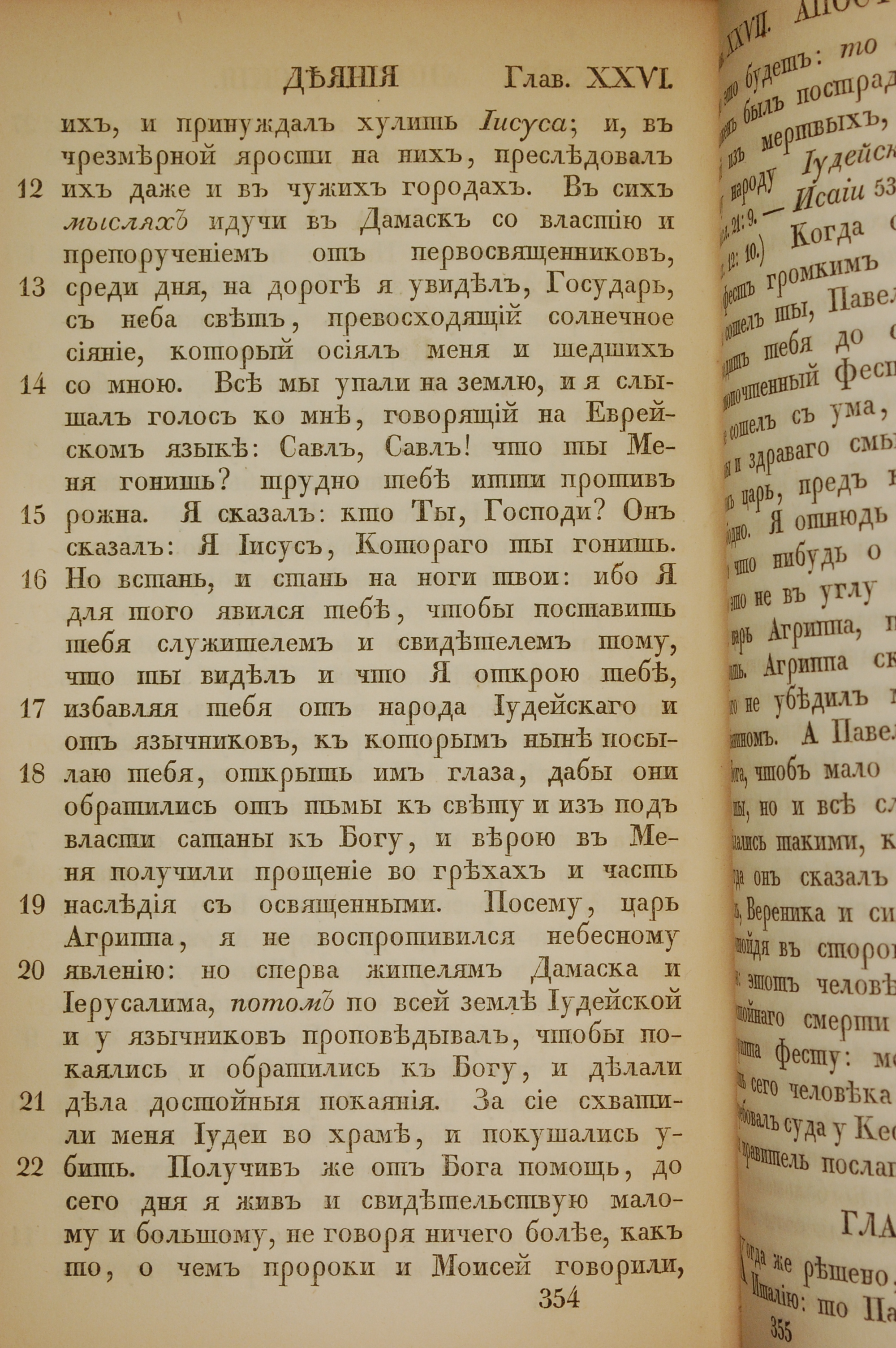 1855年俄文新約全書 使徒行傳 26 章 12 節到 26 章 22 節