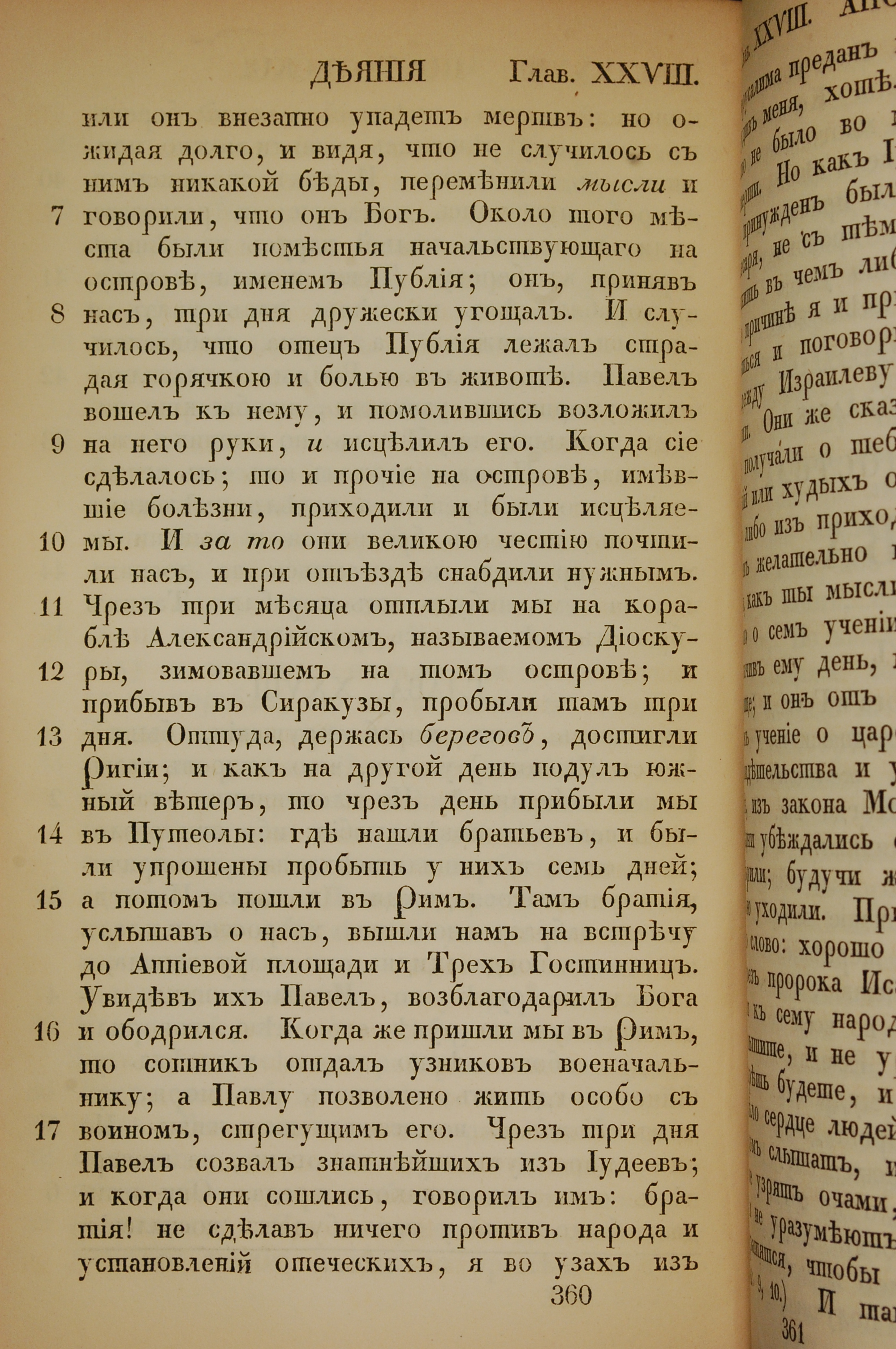 1855年俄文新約全書 使徒行傳 28 章 7 節到 28 章 17 節