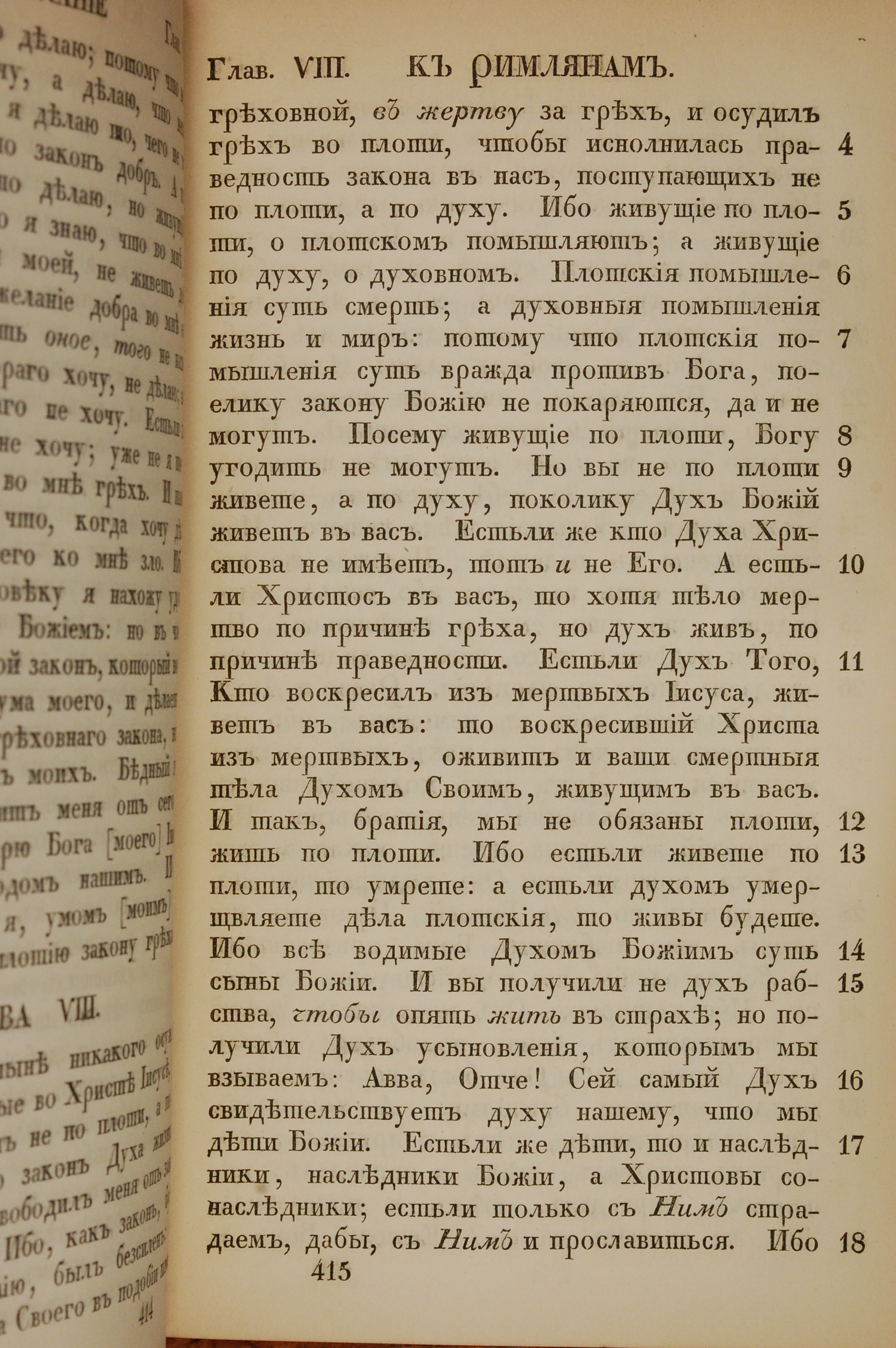 1855年俄文新約全書 羅馬書 8 章 4 節到 8 章 18 節
