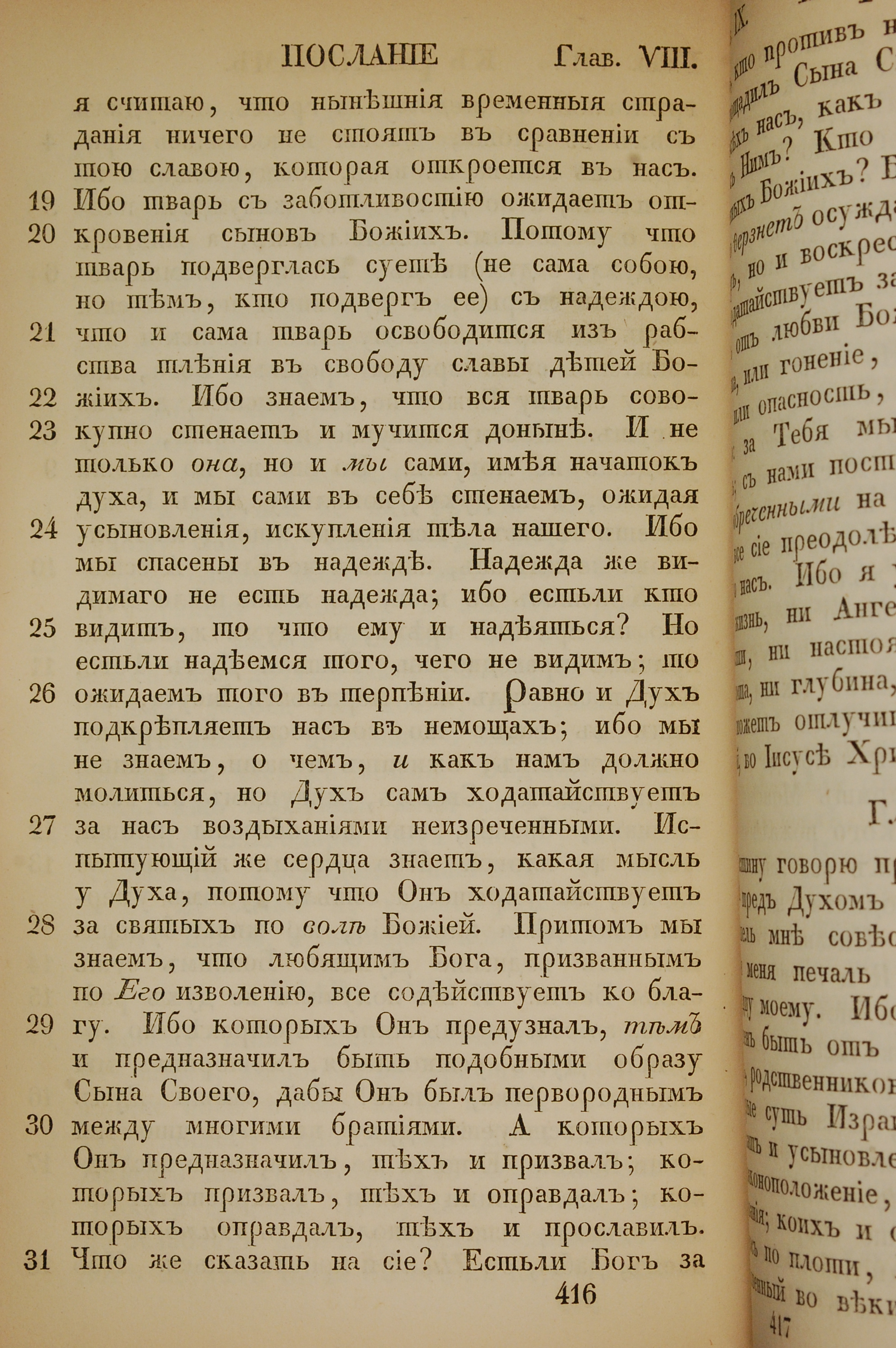 1855年俄文新約全書 羅馬書 8 章 19 節到 8 章 31 節
