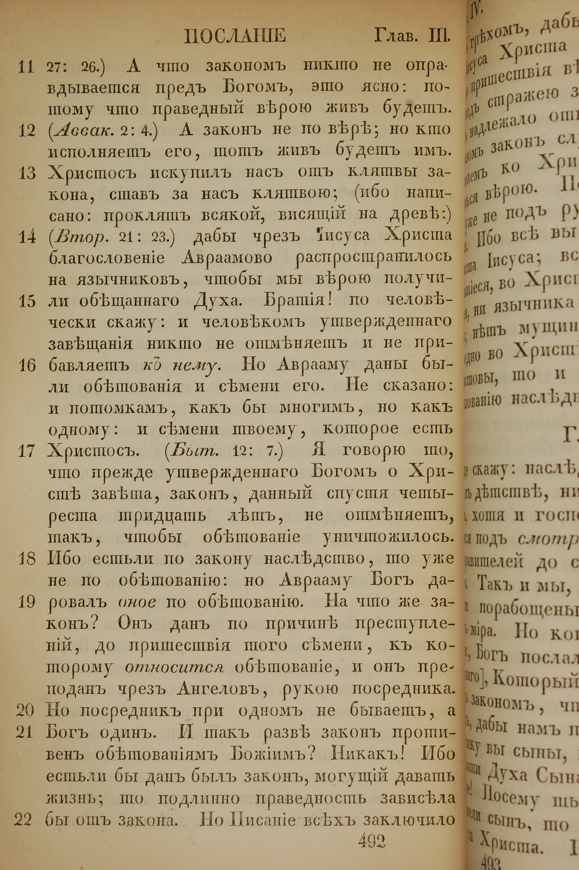 1855年俄文新約全書 加拉太書 3 章 11 節到 3 章 22 節