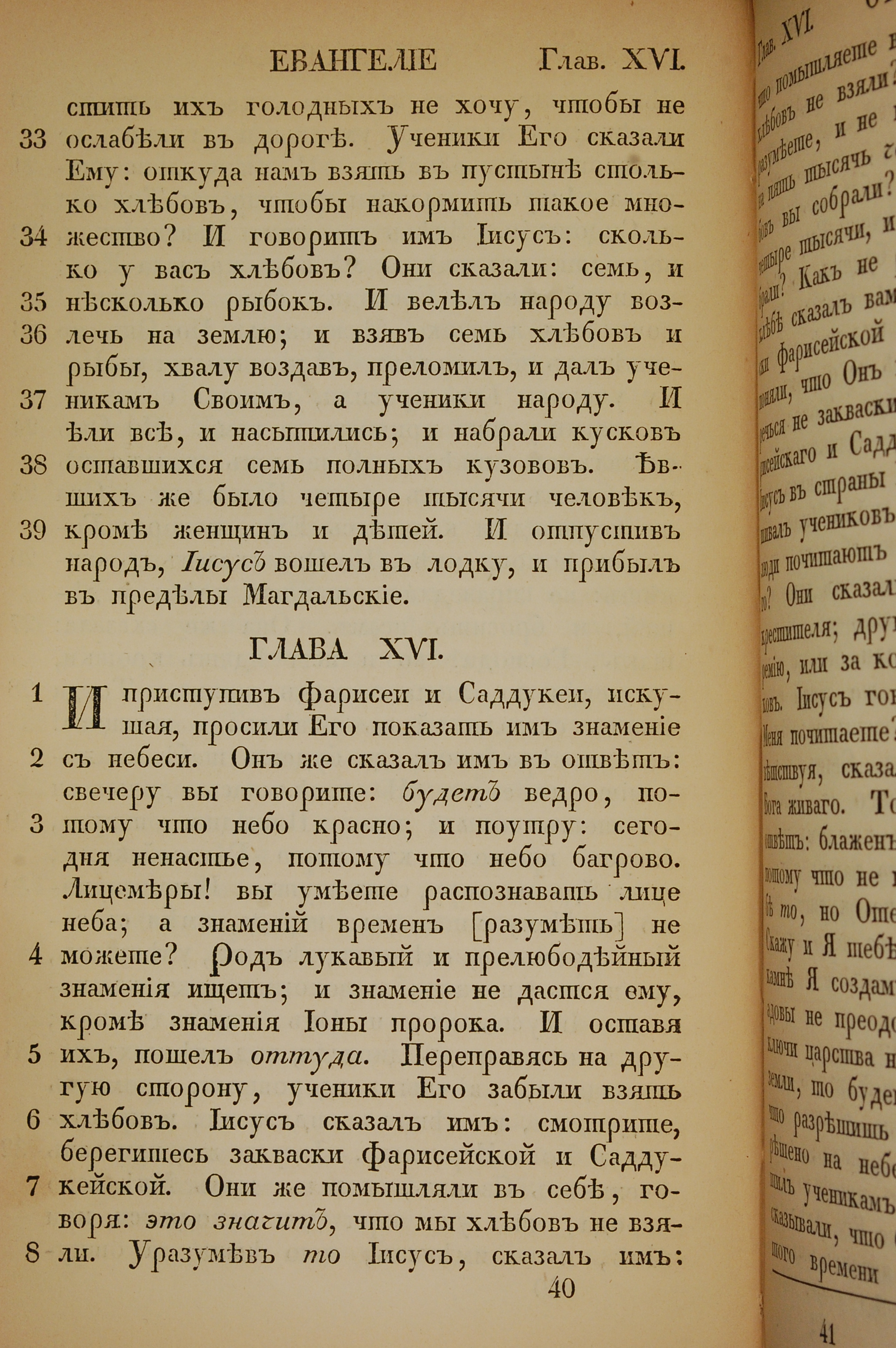 1855年俄文新約全書 馬太福音 15 章 33 節到 16 章 8 節