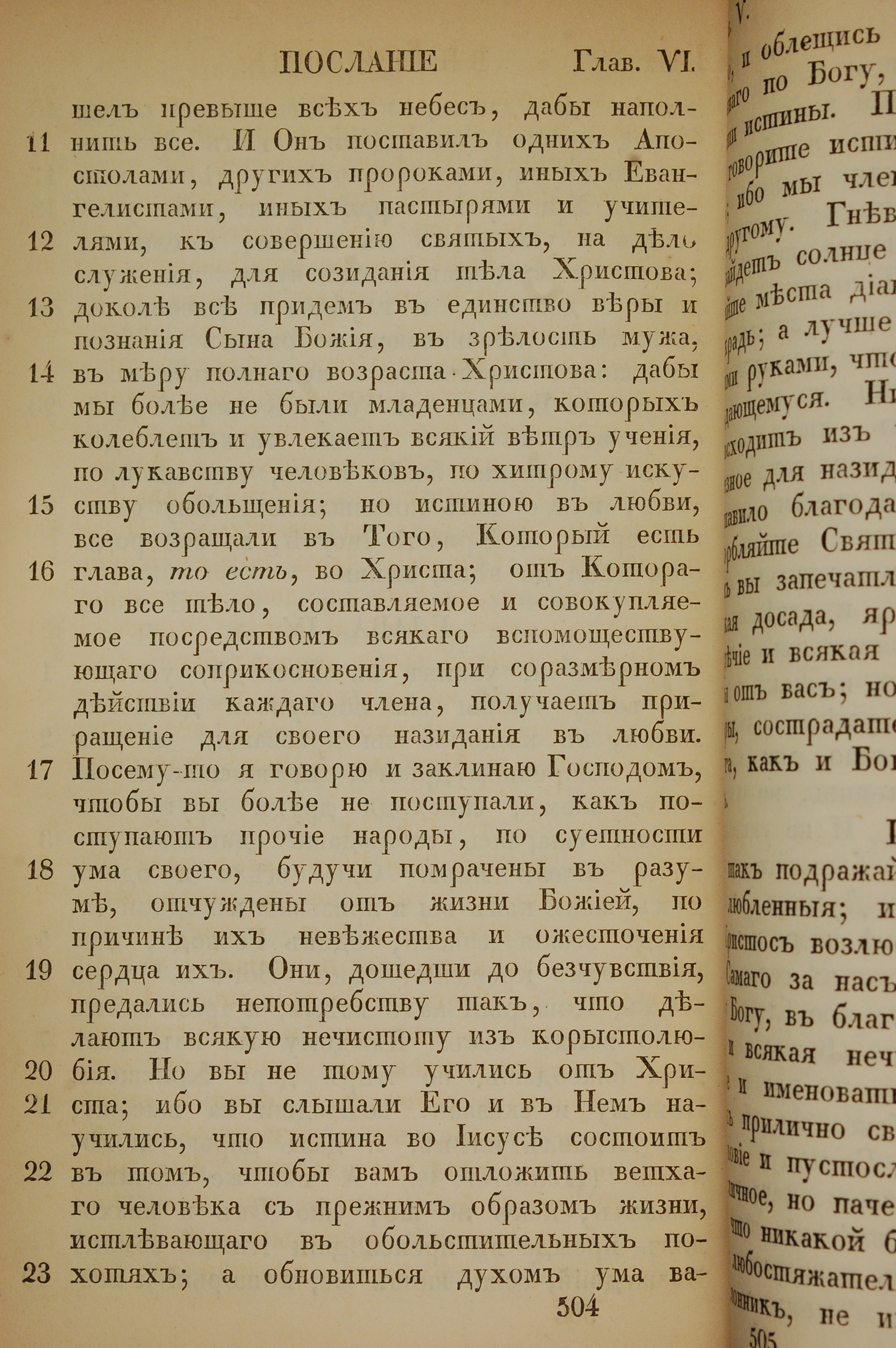 1855年俄文新約全書 以弗所書 4 章 11 節到 4 章 23 節