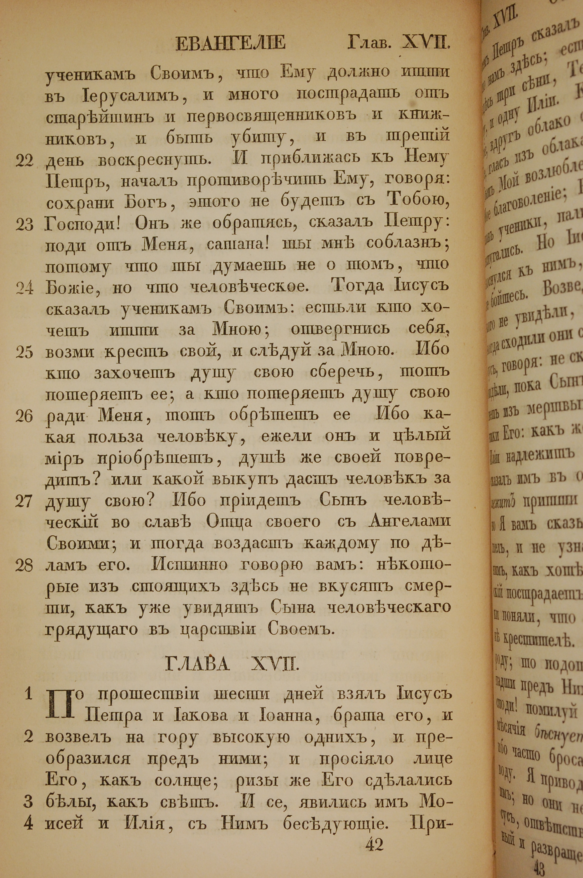1855年俄文新約全書 馬太福音 16 章 22 節到 17 章 4 節